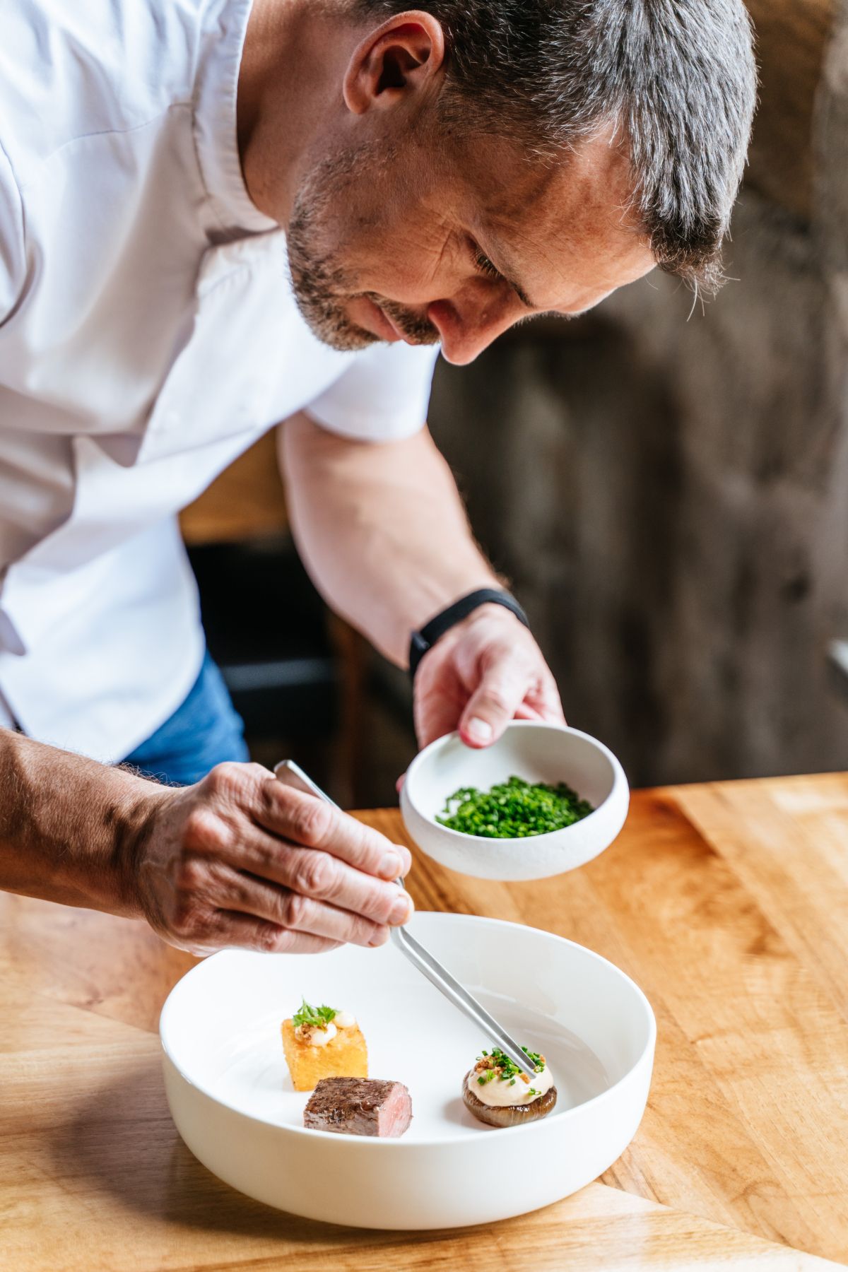 Bled je postal tudi kraj, kjer se je začela njegova resna kariera. Kuhal je v hotelu Astoria, nato v hotelu Toplice in nazadnje v legendarni Vili Bled. Ko so lastniki po štirih letih njegovega službovanja tam zaradi finančnih težav hotel zaprli, se je zdelo, da se je eno poglavje končalo. A prav takrat se je odprlo novo, še pomembnejše. Igor je dobil priložnost, da začne ustvarjati visoko nad Ljubljano, v grajskem stolpu z najlepšim razgledom na prestolnico, v restavraciji Strelec. »Sodelovanje je nastalo čisto po naključju,« se spominja z zadovoljstvom. »Sam sem ostal brez službe, Brane in Dada Jerovšek pa sta ravno načrtovala odprtje restavracije na višji ravni. Seznanili so nas skupni znanci in skupaj smo se podali v popolnoma nove vode.«