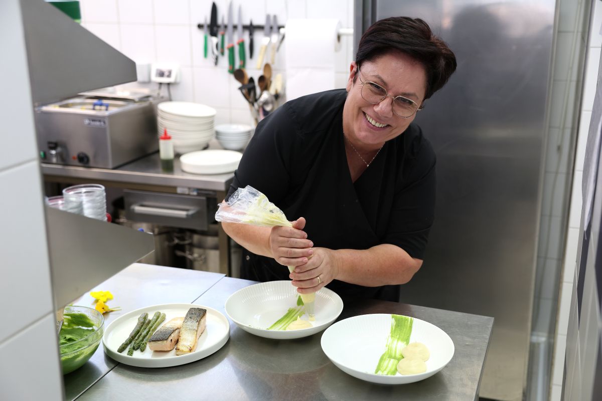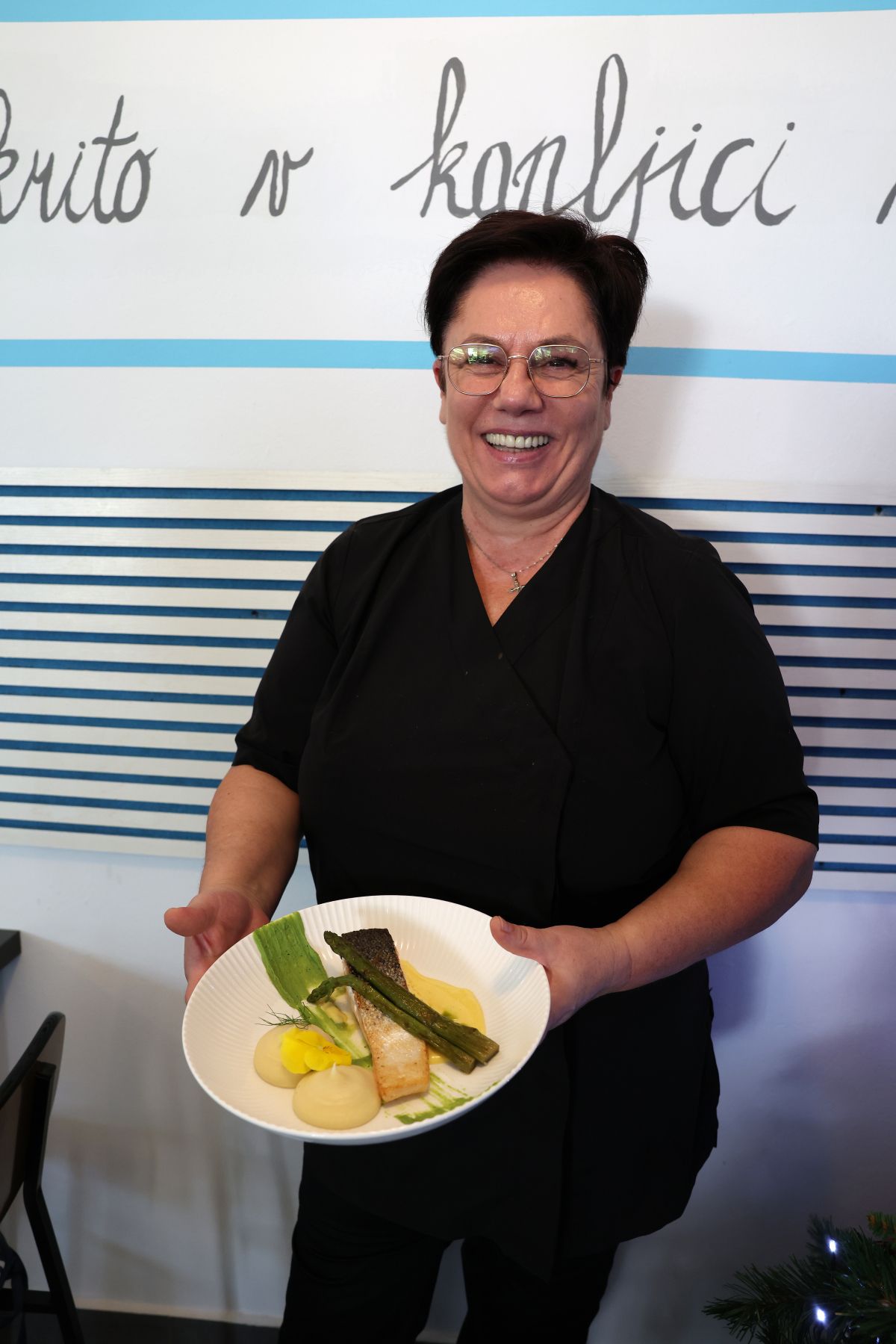 Za projektom stojita njena dolgoletna prijatelja, lastnika prestižne restavracije Old Cellar na Bledu. »Želja po sodelovanju je bila prisotna že dolgo. V preteklosti sem zanje pekla sladice, a je bila logistika zaradi razdalje med Koprom in Bledom precejšen izziv,« še pojasni. V svoji kuhinji pa je zdaj našla nov zagon. Tudi v delovnem ritmu. »Zelo sem vesela, ker delam od ponedeljka do petka v dopoldanskem času, kar je za gostince pravo razkošje. Vsak teden sproti sestavljam jedilnike s tradicionalnimi jedmi, ki so jih kuhale naše mame in babice. Hrano pripravljamo svežo, vsak dan posebej, brez zamrzovanja. Recimo, danes smo imeli sarmo, ki je hitro pošla. Potem pa so na voljo jedi, ki jih še imamo na jedilniku. Vsak teden pripravimo tudi eno posebno jed, na primer file lososa na žaru s pastinjakovim pirejem, belim poprom, šparglji s česnovim oljem ter emulzijo graha in mete.«