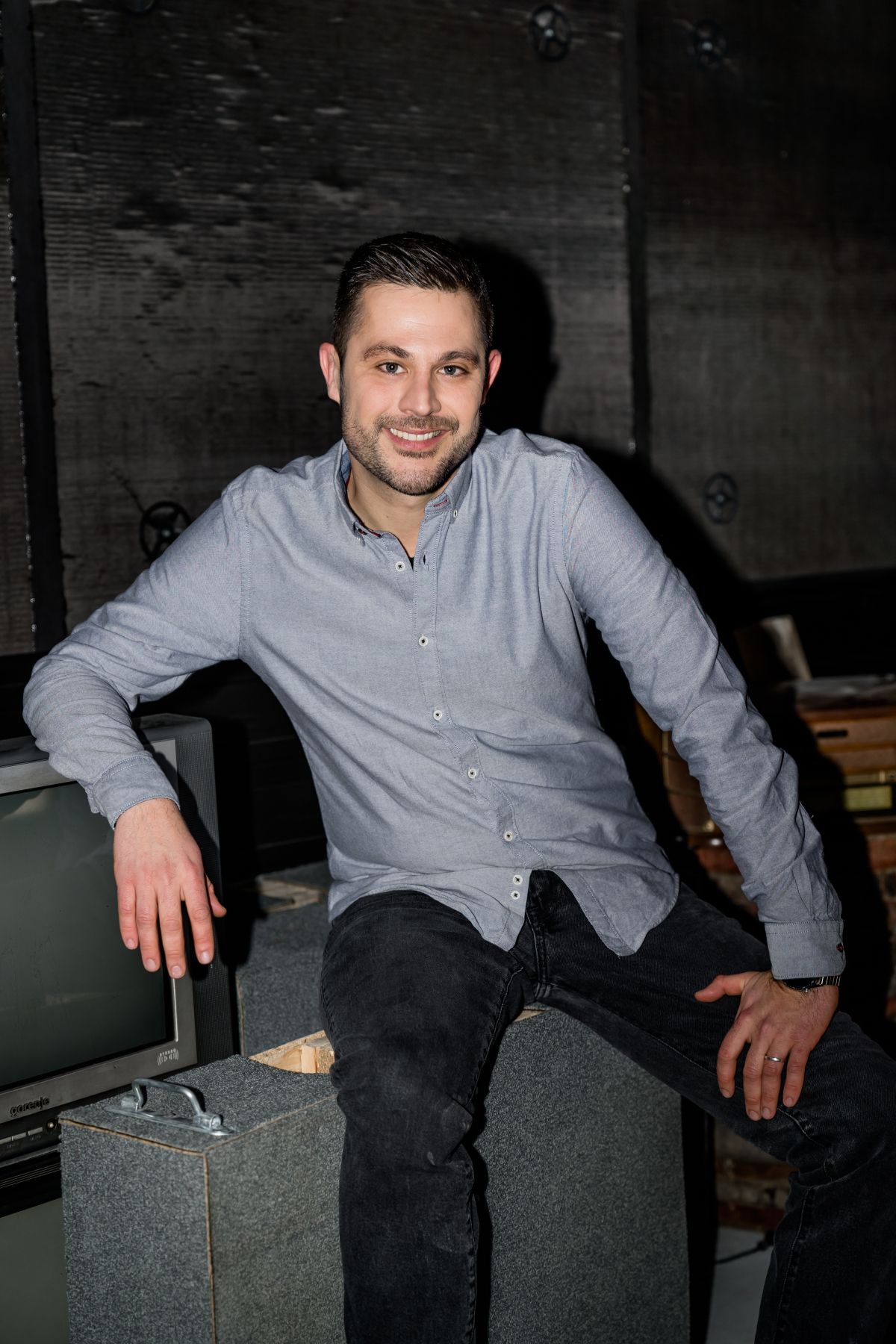 Tadej Pišek je na odru zvezda, doma pa pozornost krade njegova nagajiva psička Dobby, ki mu občasno skrije tudi kakšno nogavico.