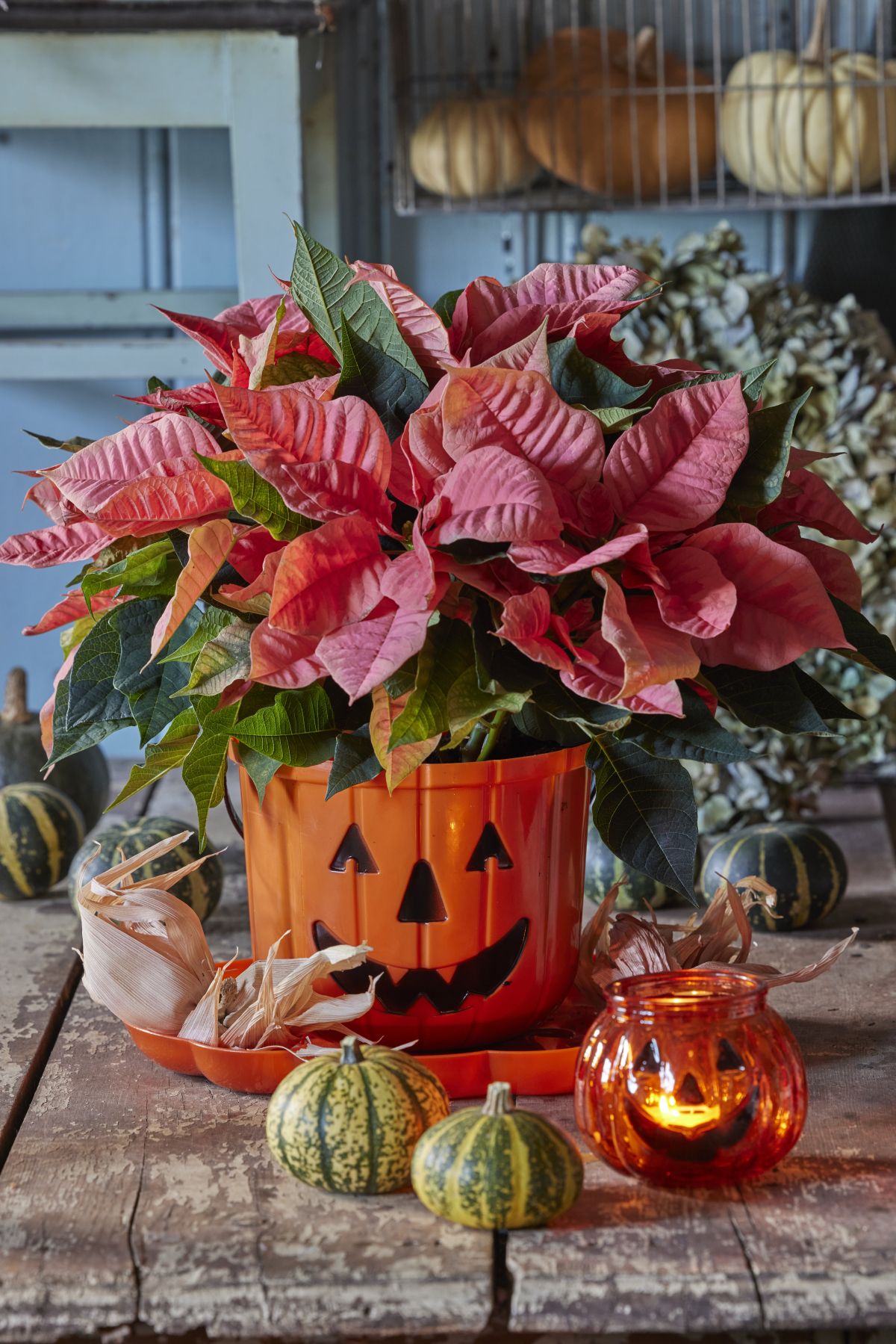 Božične zvezde v barvah lososa, cimeta ali marelice so idealne za jesenske dekoracije. V kombinaciji z bučami ustvarijo tonsko mešanico barv, ki v vsak prostor vnese veselo vzdušje.