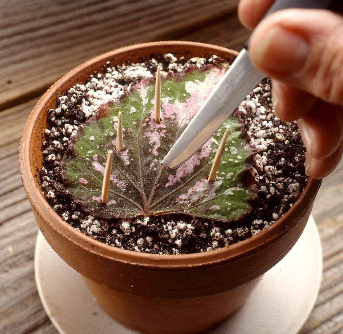 Liste, ki imajo zelo izrazite listne žile, lahko razmnožujemo tudi nekoliko drugače. Na spodnji strani lista prerežemo glavne listne žile. List s prerezanimi listnimi žilami obrnemo in položimo na vlažen substrat. Da imajo prerezane listne žile zagotovljen stik s podlago – vlažnim substratom, smo list obtežili s kamenjem. Lahko bi ga pritrdili tudi s kovinskimi sponkami, zobotrebci.