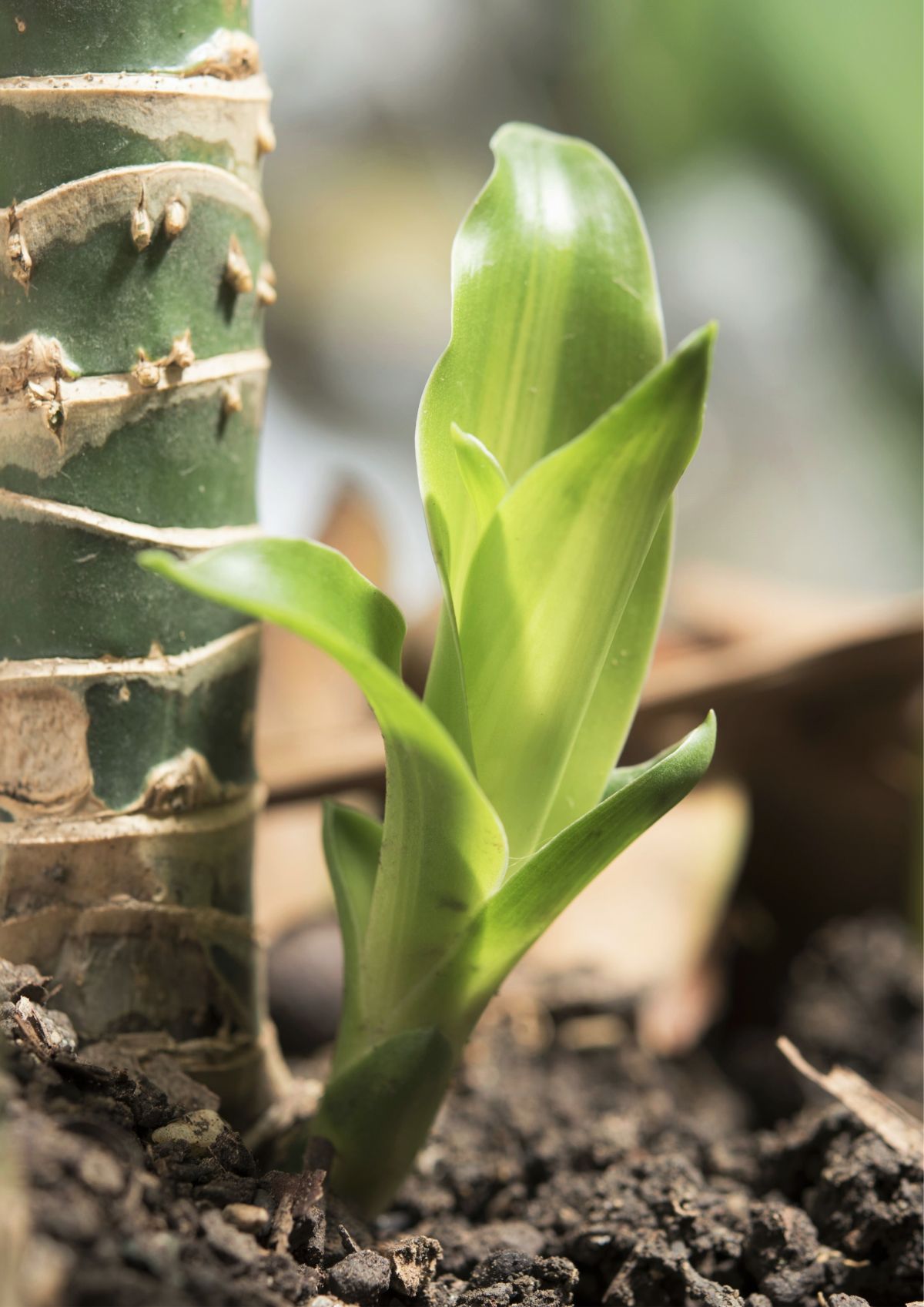 Ob steblih dracene se je iz osnove razvil nov poganjek – hčerinska rastlina. Ko doseže ustrezno velikost, jo lahko ločimo od matične rastline in posadimo v nov lonček. S škarjami odrežemo dobro razvito hčerinsko rastlino. Pritliko skrajšamo na približno 3 cm in jo potaknemo v lonec s prstjo. Mlada rastlina pri tem samo leži na substratu. Preko mlade rastline damo prozorno plastično vrečko, ki povečuje zračno vlažnost, dokler se rastlina v treh tednih ne ukorenini.