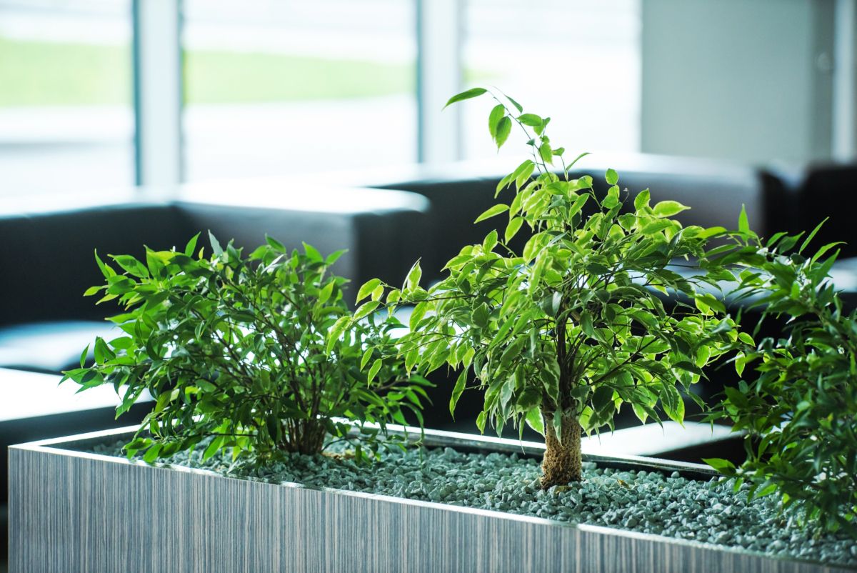 - Živahni fikus (Ficus lyrata) je priljubljena izbira za elegantne pregrade prostorov. Njegovi veliki, sijoči listi ustvarjajo osupljivo vizualno pregrado, njegov kiparski videz pa prostoru doda pridih prefinjenosti.
