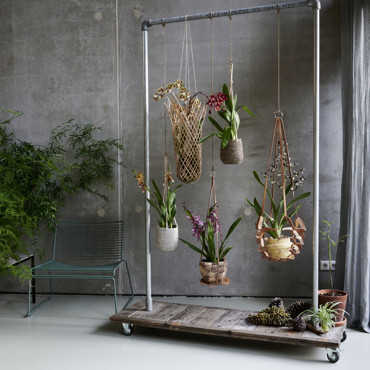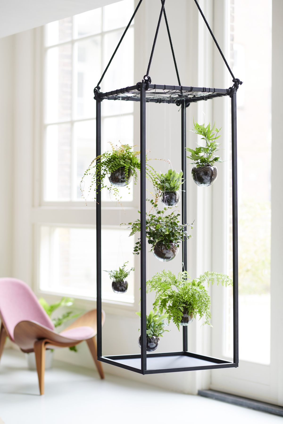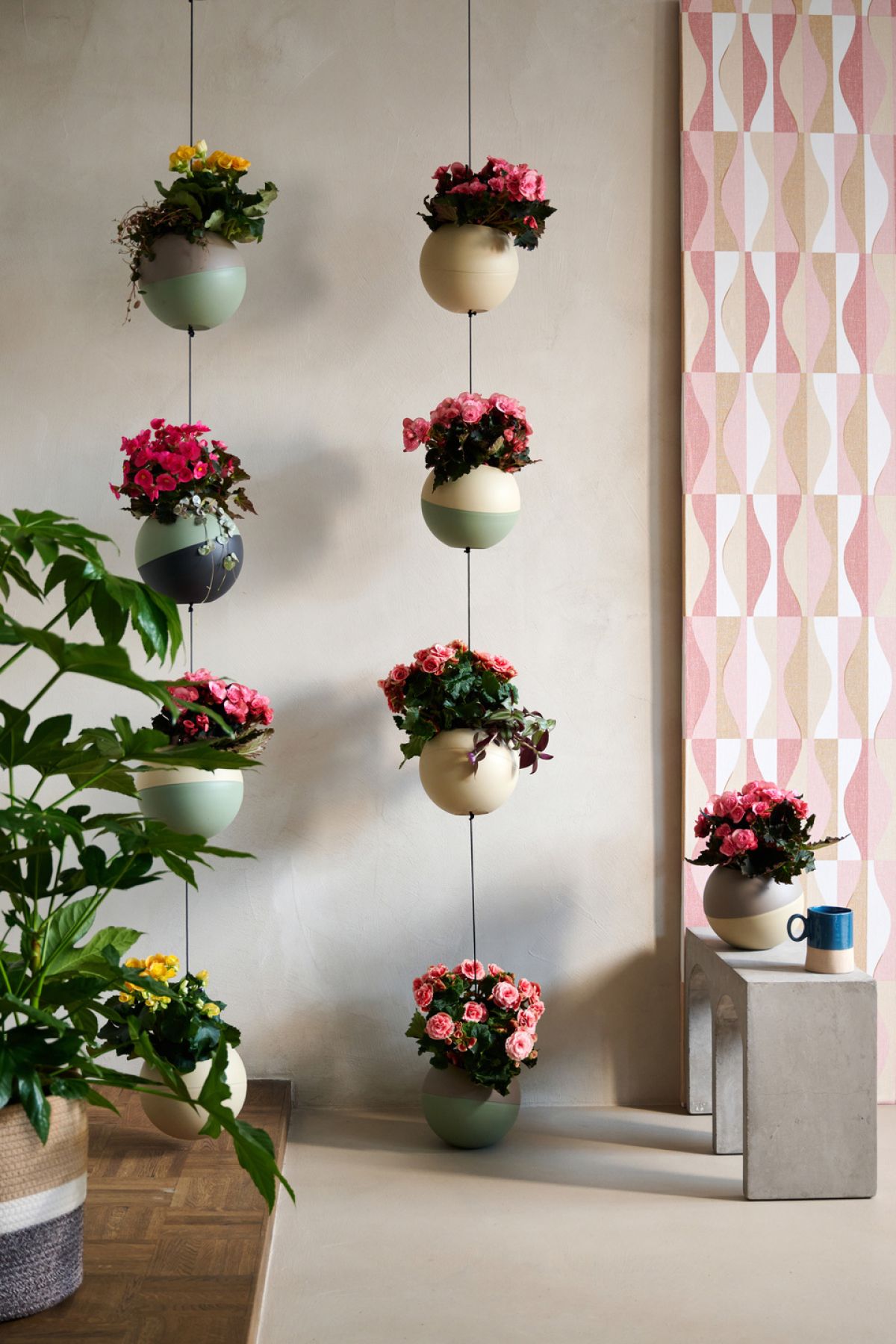 Zeleno pregrado lahko ustvarimo tudi iz stropa, in sicer tako, da pod strop ali na kakšno višjo poličko oziroma stojalo nastavimo ali zavežemo okrasne lončke, iz katerih se proti tlom bujno prevešajo zelene rastline. Tako pravzaprav ustvarimo prave zelene zavese, ki delujejo nadvse nežno in prostoru dodajo filigranski pridih elegance.