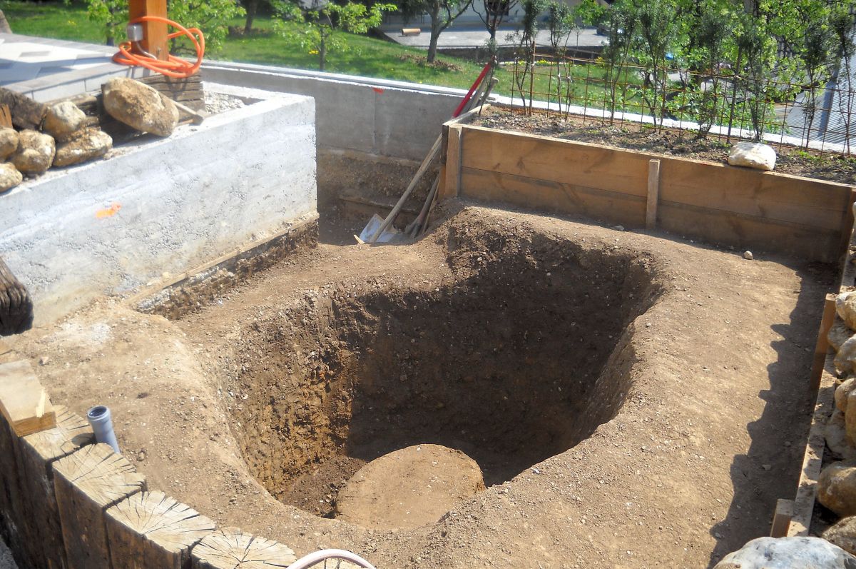 Če je ribnik manjši ali pa je na terenu, ki ni dostopen za stroje, kotanjo izkopljemo ročno. V školjko ribnika vsekamo police različnih globin, prilagojene potrebam živali in rastlin, ki jih kanimo naseliti. Vglobimo tudi ležišča večjih skal ali skalnih oblog, da se bolje »usedejo«. Izkopljemo prostor za rastlinsko čistilno na pravo. Školjko obložimo z mivko in močnim geotekstilom, ki geomembrano z gornje in spodnje strani ščitita pred poškodbami.