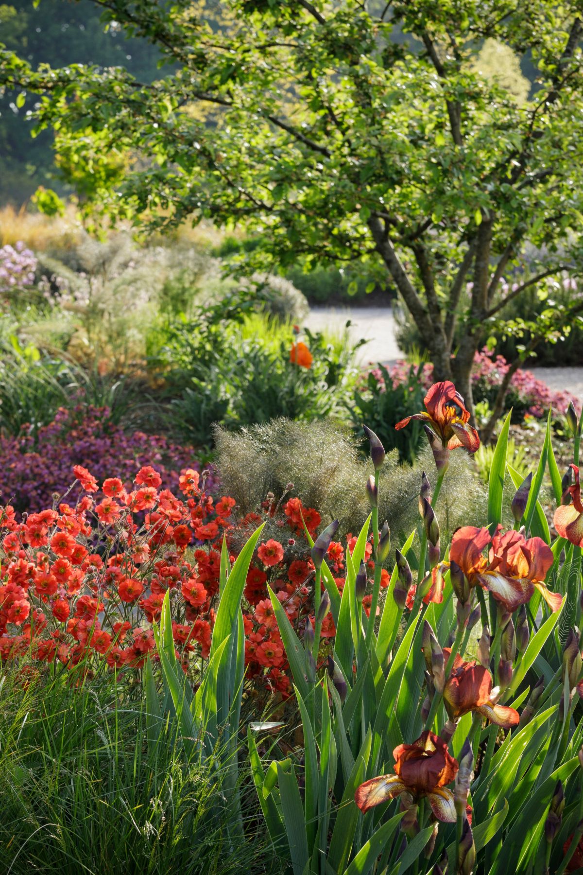 Vseeno pa ima vrt, ki ga obravnavamo kot proces, vedno neko notranjo logiko. Ima jasno ogrodje, ki preprečuje kaos. To so poti, robovi, prehodi, osnovne linije pogleda in nekaj strukturnih rastlin, ki držijo obliko tudi takrat, ko cvetja ni. V vrtu je tudi dovolj prostora, da se po njem lahko sprehajamo in družimo; gredice niso zabetonirane v eno idejo, ampak se lahko sčasoma preoblikujejo.