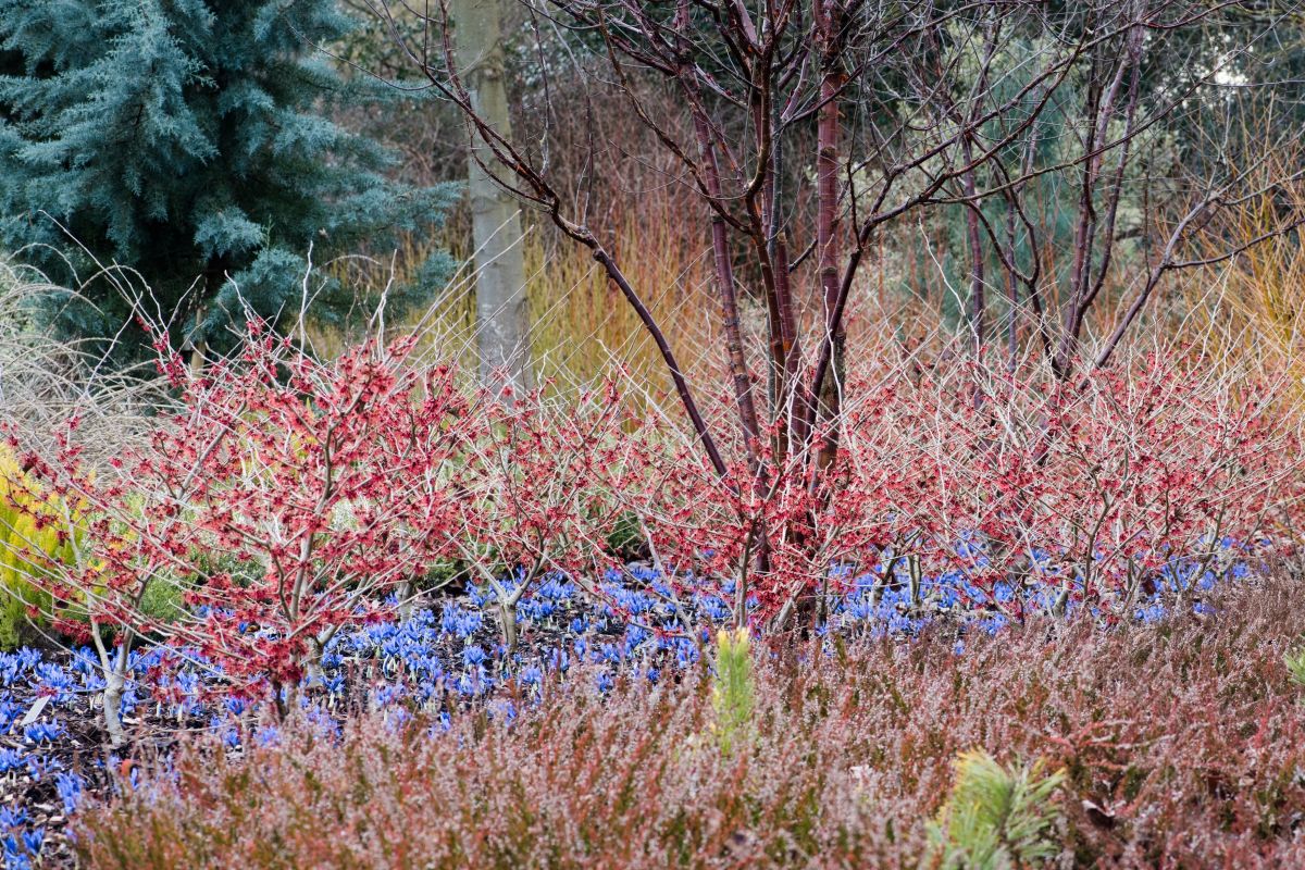 Druga poteza je struktura. Ni mišljeno kot stroga geometrija, temveč imamo v mislih elemente, ki držijo kompozicijo tudi, ko cvetja ni. Okrasne trave, zimzelene obrobe, grmi s čvrsto silhueto, kamni, robniki, poti … Ko se vrt pozimi umiri, se šele vidi, ali ima hrbtenico. Pri načrtovanju si torej dovolimo razmišljati tudi o vrtu v februarju. Kaj bo takrat vidno? Kje bo jasen rob? Kje bo pot, ki usmerja pogled? In kje bo nekaj, kar zagotavlja lepo strukturo zasaditve tudi brez cvetja – na primer vednozeleni grm ali skupina trav, ki jih pozimi pustimo in jih režemo šele tik pred odganjanjem?