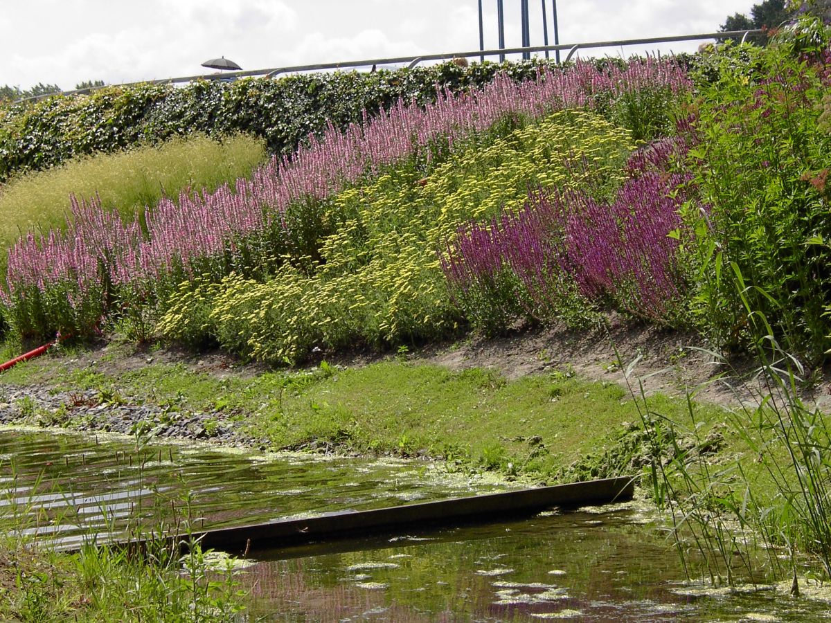 Za zamočvirjene obvodne površine ali tudi take, ki niso ob vodi, imajo pa zelo glinasta tla, na katerih običajne okrasne trajnice in drevnine ne morejo uspevati, so kot izjemno dolgožive in nezahtevne primerne rdečelistna imperata (Imperata cylindrica 'Red Baron'), razne sibirske (Iris sibirica) in japonske (Iris ensata) perunike ter navadna krvenka (Lythrum salicaria).
