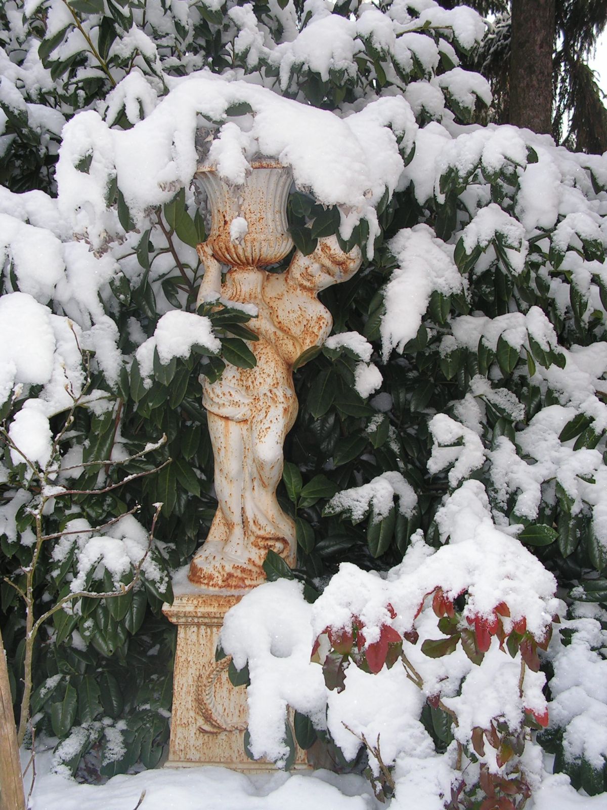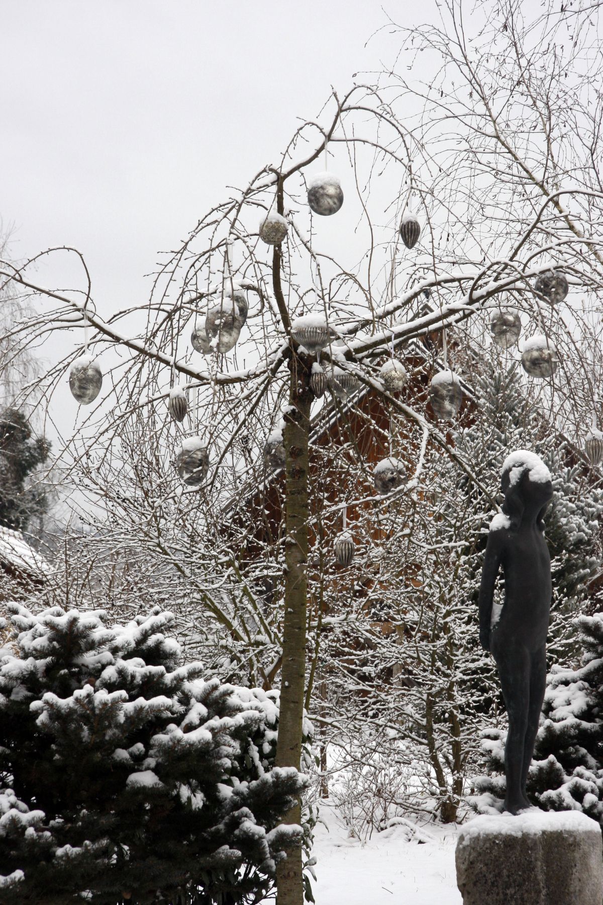 Tako na izbrana mesta umestite vrtne skulpture umetelno izdelanih snežink, med zasaditve ali na zasnežen travnik postavite skulpturo vrtne živali, morda celo iz snega izdelate kakšno svojo skulpturo (lahko je to na primer le elegantno oblikovana snežna ali ledena krogla) … Večje skulpture lahko tudi osvetlimo, tako bo ponoči videti, kot da so na temnem ozadju zares oživele.