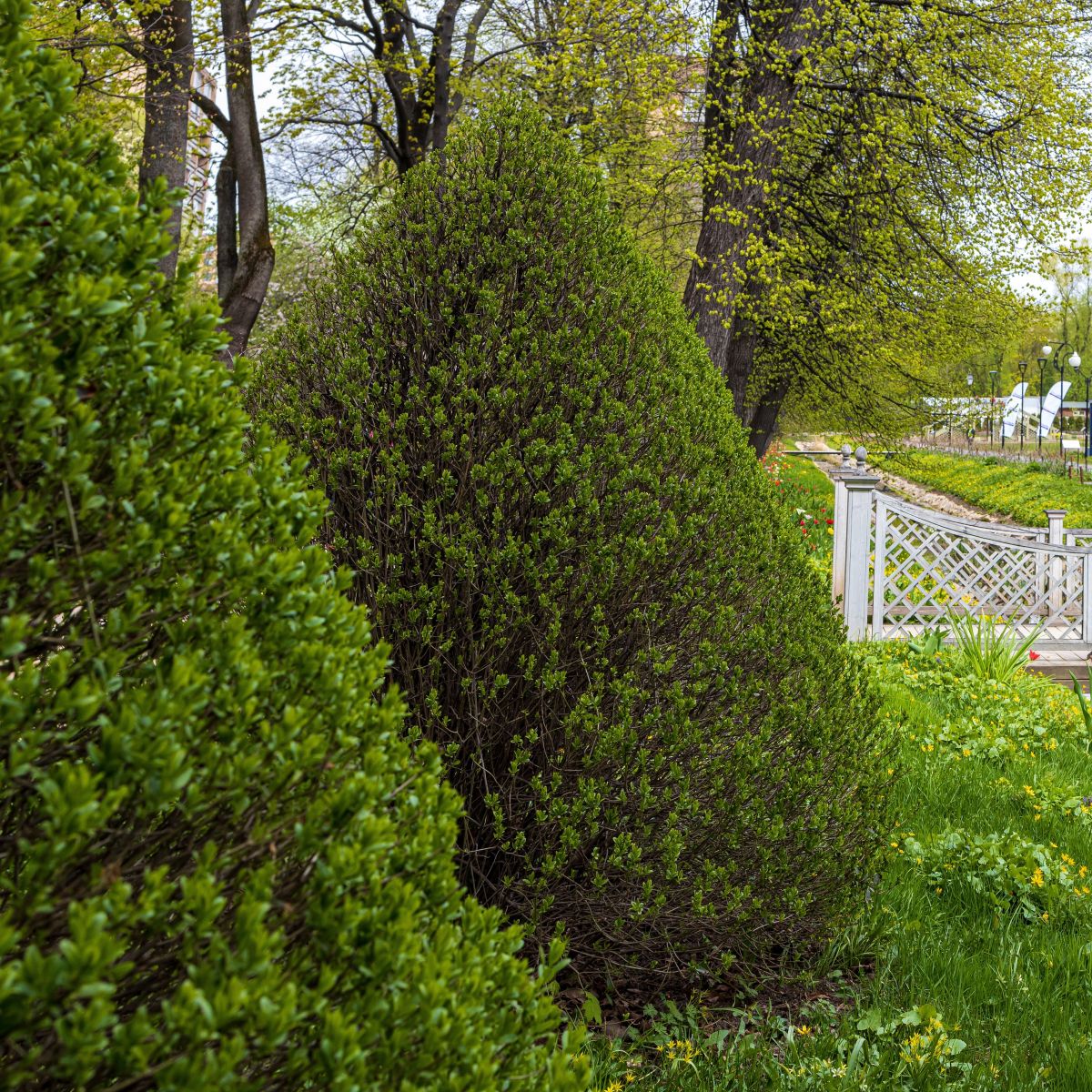 Ligustri in tise, ki jih pogosto oblikujemo v žive meje, dobro prenašajo obrezovanje. Pri njih je pomembno ohraniti rahlo stožčasto obliko, širšo pri tleh in ožjo na vrhu. Tako sončna svetloba doseže vse dele in rastlina ostane gosta od spodaj navzgor.