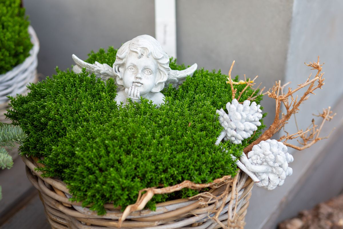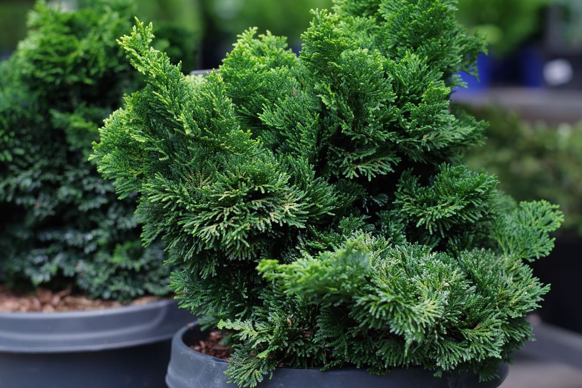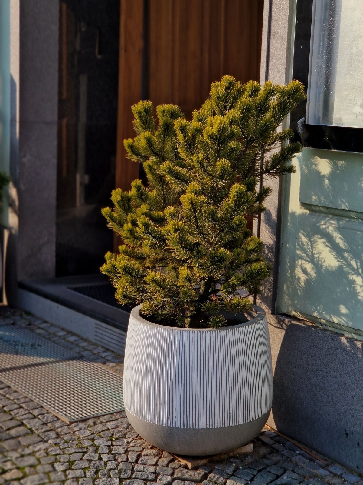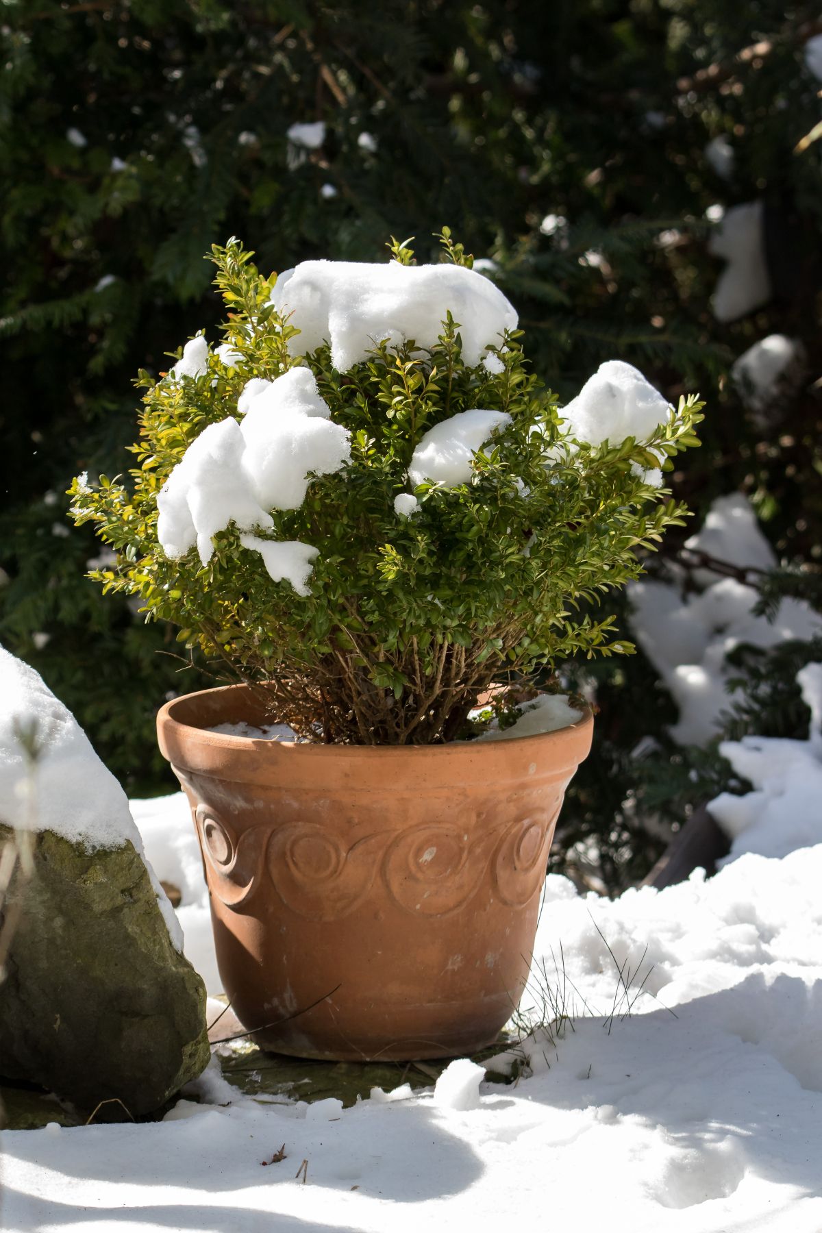 Pušpan je zimzelena grmovnica, ki ohrani liste vse leto. Poseben je zato, ker ga lahko oblikujemo v različne oblike – kroglice, stožce ali celo okrasne figure. Zaradi svoje trpežnosti je zelo primeren za zimske zasaditve v loncih in koritih. Raste počasi, a je dolgotrajen in zanesljiv. Pomembno je, da mu pozimi ne zmanjka vlage, saj suha zemlja lahko povzroči rjavenje listov.