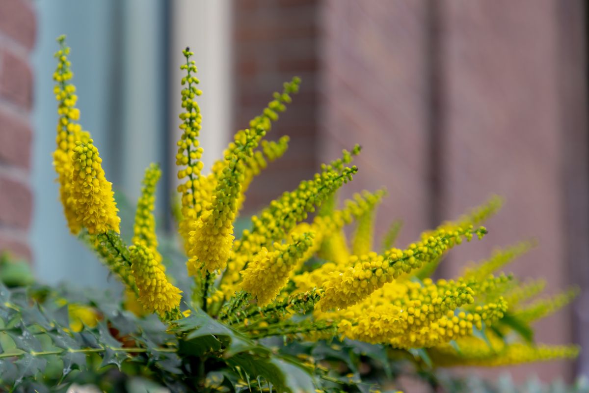 Mahonija je zimzelena rastlina z bleščečimi, nazobčanimi listi, ki so dekorativni vse leto. Posebej zanimiva postane zgodaj spomladi, ko zacveti z rumenimi cvetovi, ki oddajajo prijeten vonj. Sledijo jim temno modre jagode, ki so prav tako okrasne. Rastlina je zelo odporna, nezahtevna in lepo uspeva v polsenci. V koritih in loncih je nekoliko nižja, zato jo lahko kombiniramo z višjimi zimzelenimi rastlinami.