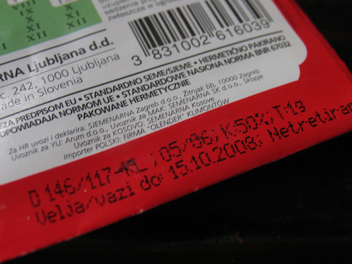 Poiščite tudi žig na vrečici in tam poskušajte najti podatek o kaljivosti, predvsem pa o starosti semena. Tega sicer ne boste našli neposredno, ker ni obvezen podatek po zakonodaji. Boste pa lahko razbrali iz tega, kako dolgo naj bi bilo seme kaljivo. Običajno je to tri leta, torej če je seme uporabno samo do leta 2022, gre za staro seme.