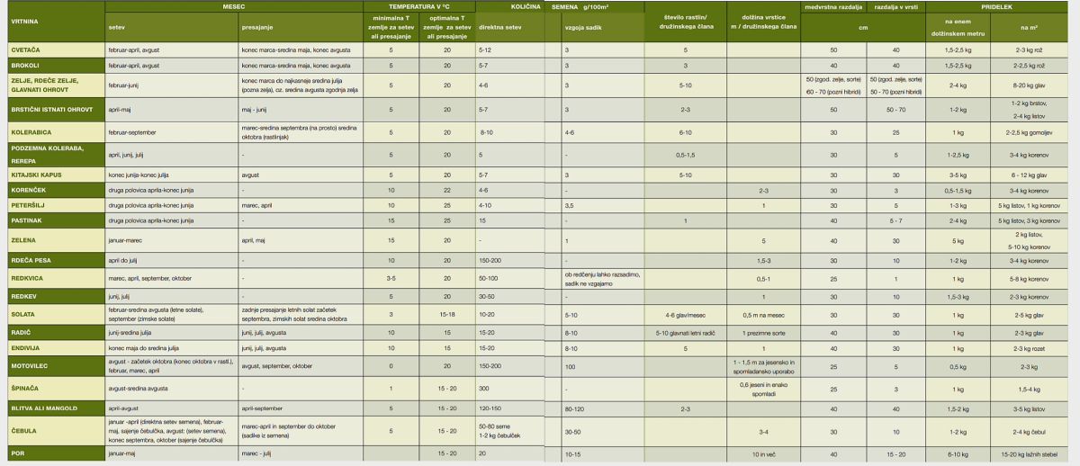 Z naslednjo tabelo sem skušala doseči ravno to – strniti glavne informacije tako, da boste imeli celoten pregled na enem mestu. Tabela je sicer zajetna in morda malce izstopa od drugih vsebin, ki ste jih vajeni, a vam bo zagotovo nadvse dobro služila, zato se jo splača shraniti tudi v svoj vrtnarski dnevnik.