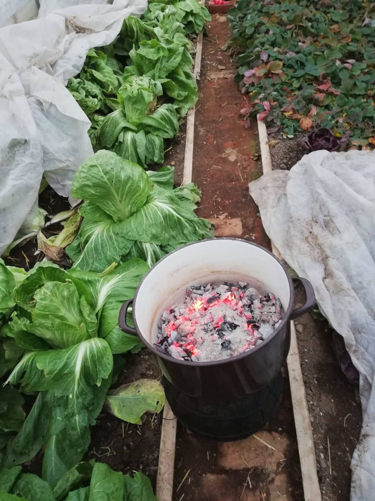 Rastlinjak lahko ogrevamo s svečami, zelo dobro pa deluje tudi še tleč pepel. Damo ga v iztrošeno, a ne preluknjano kovinsko posodo. Ko zvečer nehate kuriti hišo, žerjavico odnesite v rastlinjak. Pri tem je seveda treba zelo paziti, kam in kako žerjavico postavimo, da ne bi povzročili požara. Žerjavica je odlična rešitev za spomladanske pozebe, ki so običajno kratkotrajne.