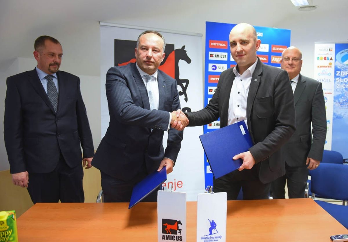 Na sedežu Smučarske zveze Slovenije je direktor zveze Jožko Križan podpisal pogodbo o sodelovanju s podjetjem Amicus oziroma generalnim direktorjem podjetja Primožem Kapusom. Povod za podaljšanje sodelovanja je bilo prijetno druženje z reprezentanti v hitrih disciplinah in Ano Drev.