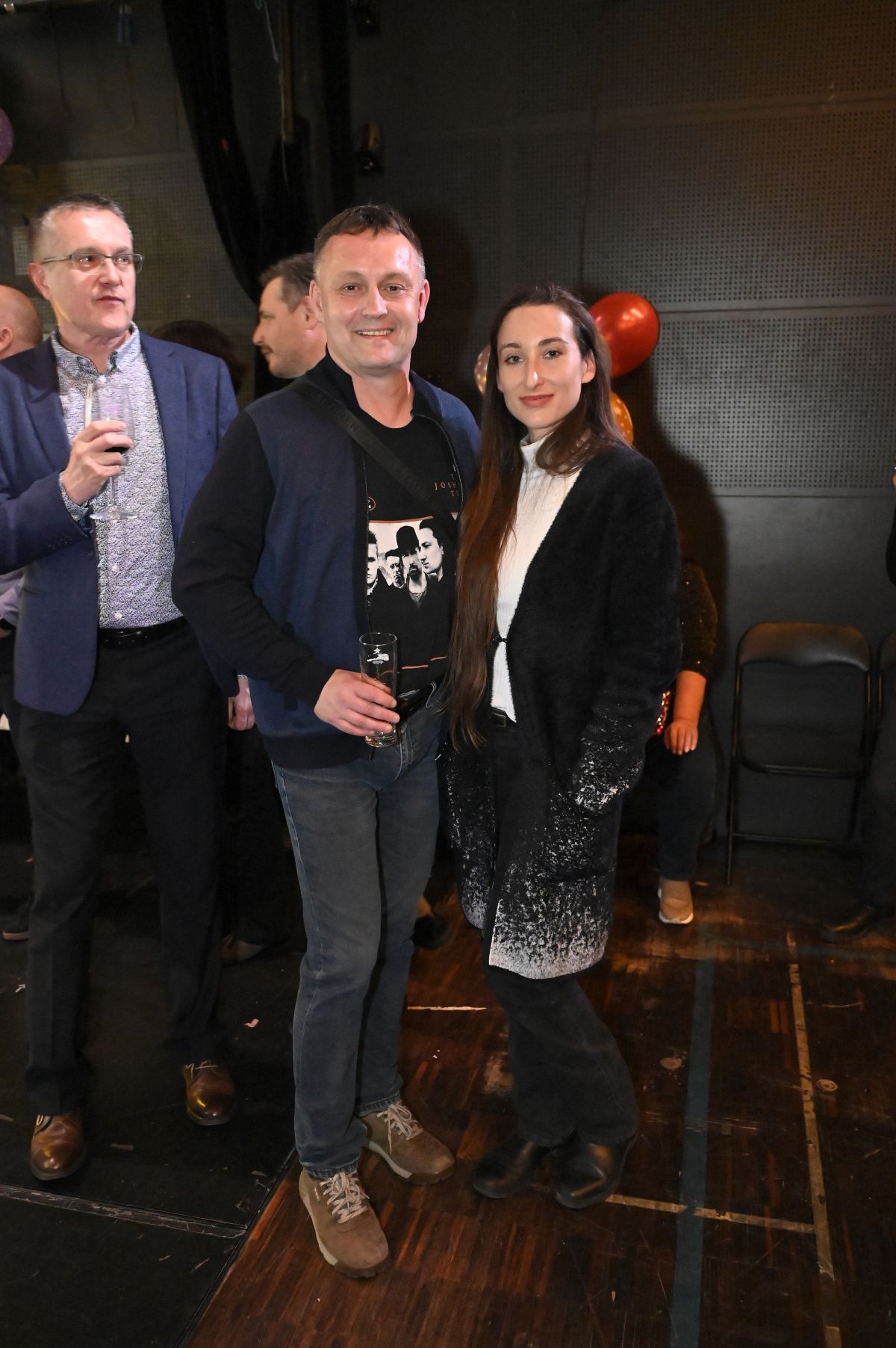Jubilej je s prijatelji proslavil v svojem Mini teatru. Na platnu so se vrtele fotografije iz njegovega življenja, prava paša za oči in brbončice pa je bila tudi kulinarična ponudba. Da se uživanje v njej gostom naslednji dan ni preveč poznalo, je z izbiro glasbe skrbel direktor Muzeja in galerij mesta Ljubljane Blaž Peršin.