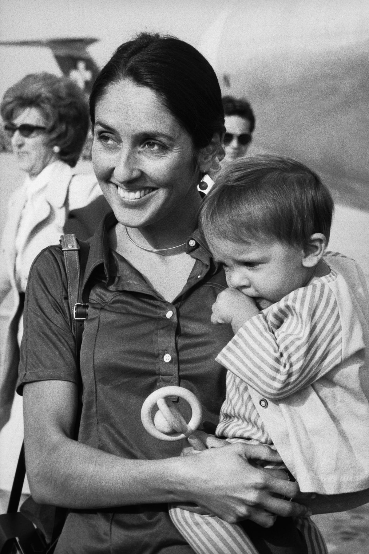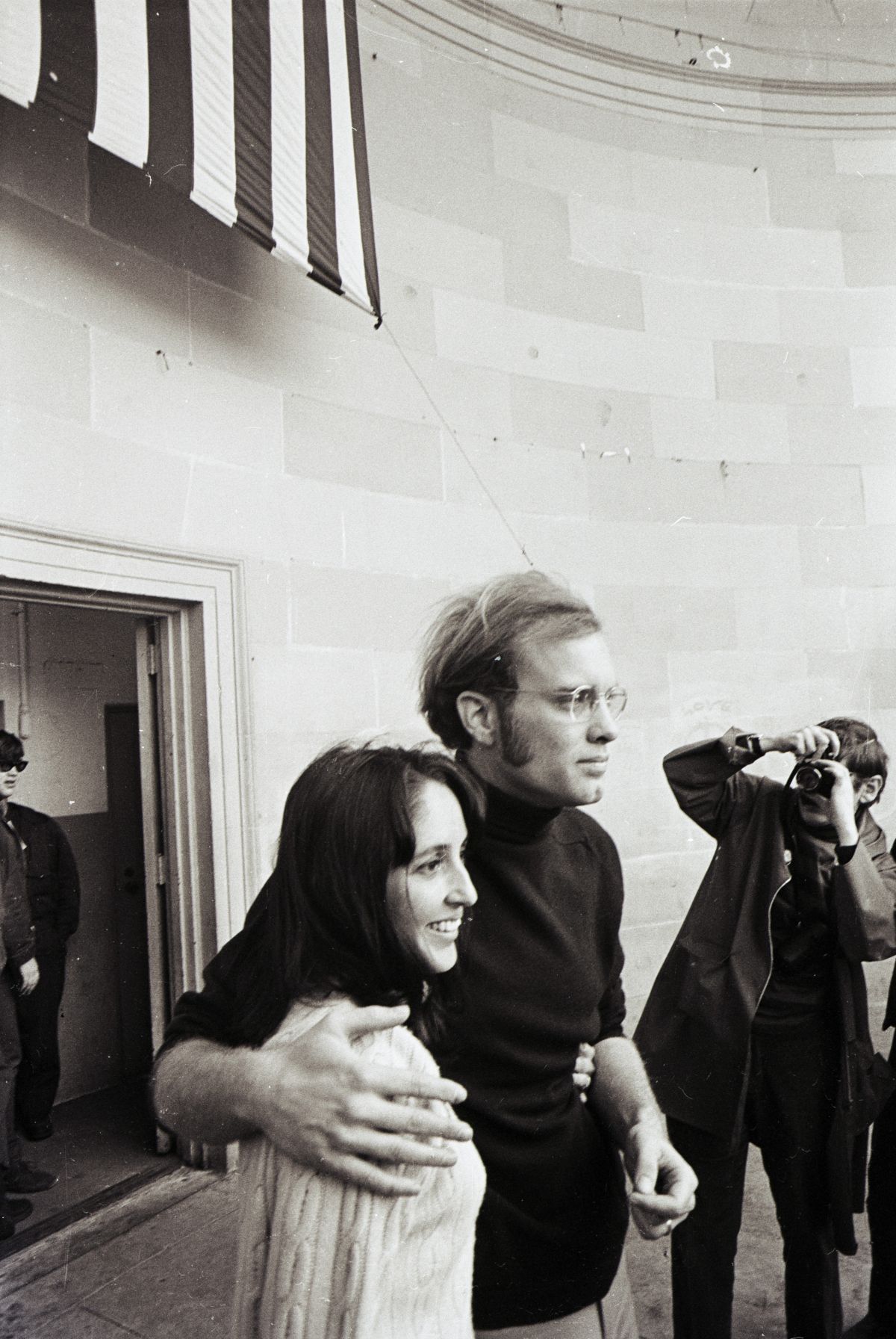 Oktobra 1967 so jo skupaj z mamo in 70 drugimi ženskami aretirali v Oaklandu v Kaliforniji pred kasarno, ko so blokirali vhod novim nabornikom. V zaporu v Santa Riti je spoznala Davida Harrisa in po izpustitvi sta se začela dobivati. Baezova se je preselila v njegovo protestniško komuno na hribih nad Stanfordom in po treh mesecih sta se odločila, da se poročita, kar sta storila 26. marca 1968 in se vselila v nov dom v hribih nad Los Altosom, kjer sta imela ogromno posestvo z vrtovi. Kmalu zatem so Harrisa vpoklicali in ker se ni odzval, so ga julija 1969 aretirali. Baezova, že visoko noseča, je potem javno protestirala za njegovo izpustitev. Njun sin Gabriel se je rodil 2. decembra 1969, Harrisa pa so izpustili po 15 mesecih zapora. Samo tri mesece pozneje sta se tudi razšla in uradno ličila 1973. Baezova je v avtobiografiji zapisala, da je ustvarjena, da živi sama. Sta pa oba ostala v dobrih odnosih. Gabriel je tudi sam glasbenik, njegova hčerka Jasmine pa je tudi sama nekaj časa pela z babico Joan.