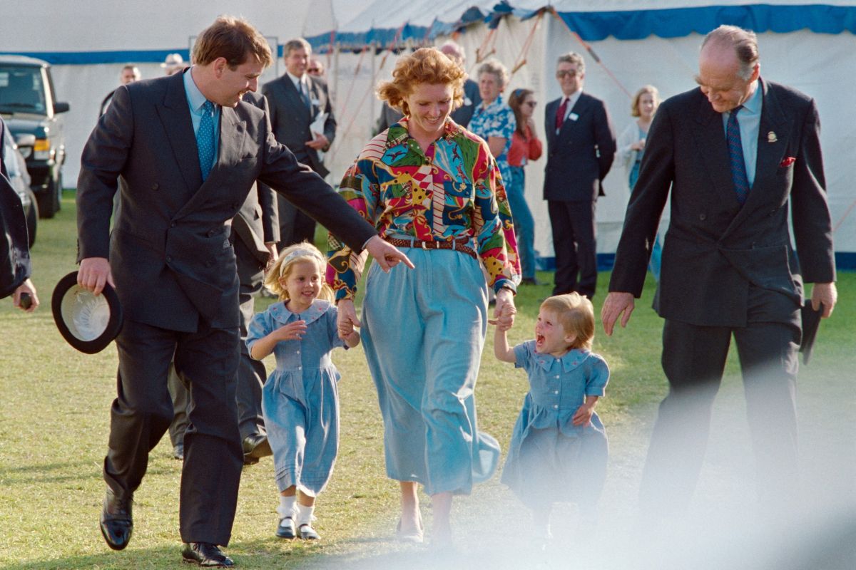 16. maj 1992, Windsor: Andrew Windsor in Sarah Ferguson se skupaj s hčerkama pojavita na konjeniškem spektaklu Royal Windsor Horse Show, prvič po oznanitvi ločitve marca istega leta.