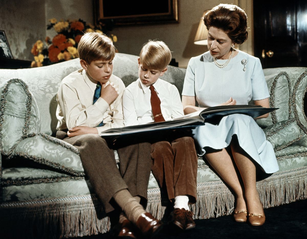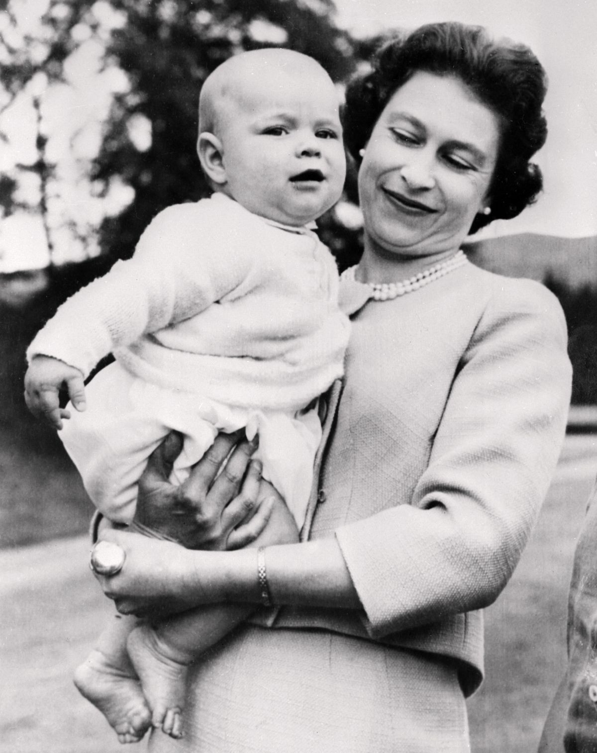Kraljica Elizabeth II v nežnem trenutku s sinom Andrewjem, avgust 1970.