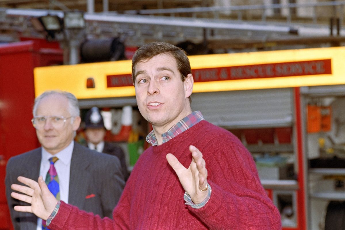 Andrew govori z novinarji med gašenjem obsežnega požara na gradu Windsor, novembra 1992
