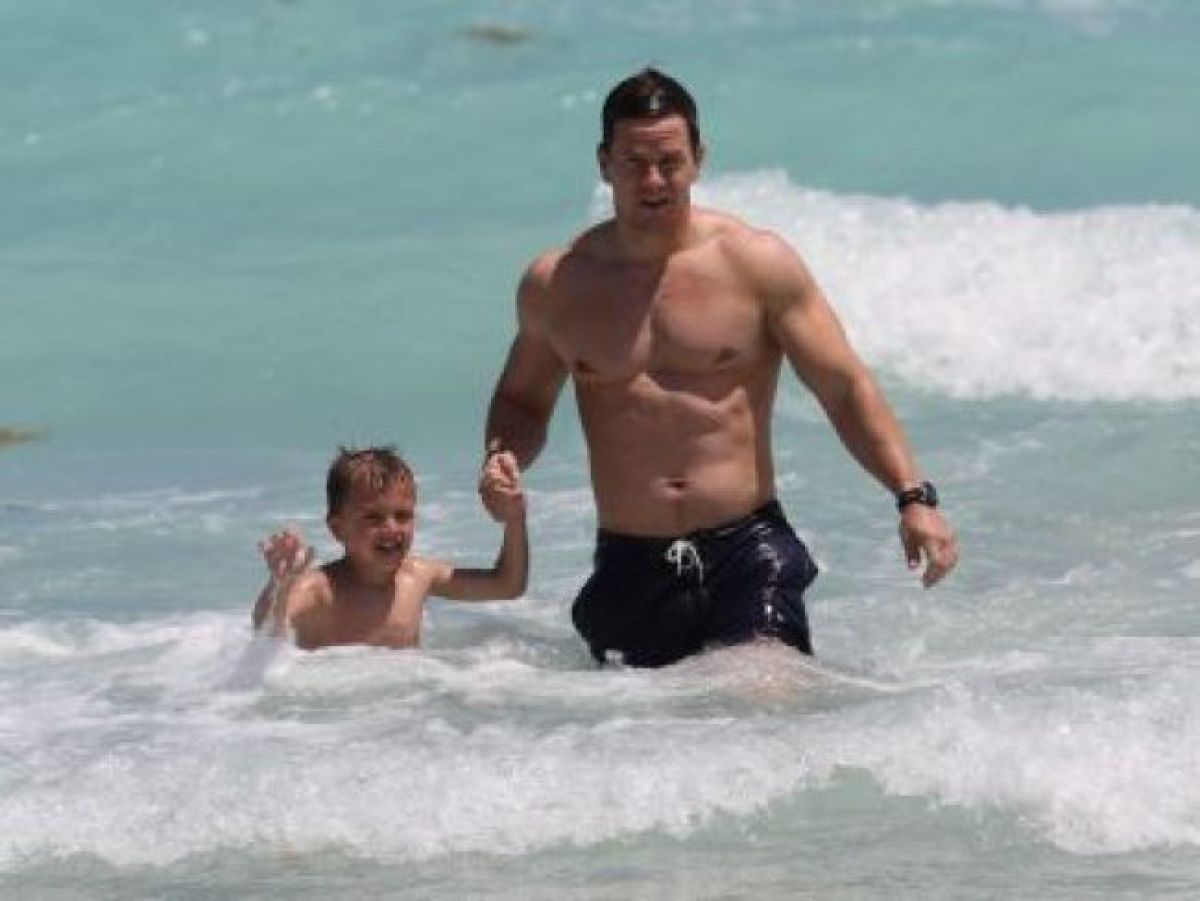 Za vlogo telesnega stražarja v komediji Pain and Gain, ki jo v snema v Miamiju, je na vso moč treniral, rezultat je prav presenetljiv. Navsezadnje ne sme zaostajati za filmskim partnerjem Dwaynom Johnsonom (40 let, Kralj škorpijonov), ki ga upravičeno kličejo The Rock (Skala). Z Wahlbergom je v Miamiju tudi njegova družina - na sliki s šestletnim sinom Michaelom, ki z očetom očitno uživa.