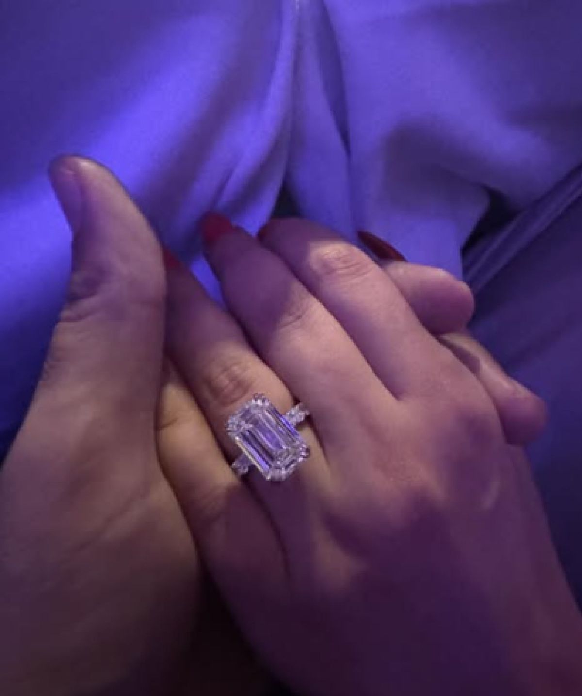 V uradnem sporočilu njegove ekipe za odnose z javnostmi je zapisano, da sta se zaročila že pred dvema mesecema, veselo novico pa sta zdaj na družbenih omrežjih s fotografijo bogatega zaročnega prstana potrdila tudi sama. Prstan je takoj pritegnil pozornost, predvsem zato, ker gre za redko oblikovan, smaragdno brušen diamant s težo dobrih 11 karatov, ocenjen pa je na vrtoglavih 1,1 milijona ameriških dolarjev.