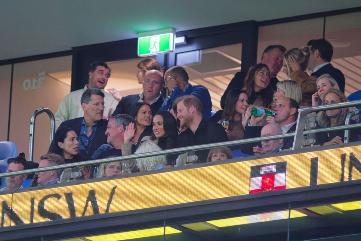 Medtem ko so udeleženke ostale v hotelu in nadaljevale slovesno večerjo brez svoje glavne gostje, sta Meghan in Harry iz lož stadiona mahala navijačem. Meghan je bila nadvse nasmejana, v rokah je držala kozarec vina ter se vidno in sproščeno zabavala.