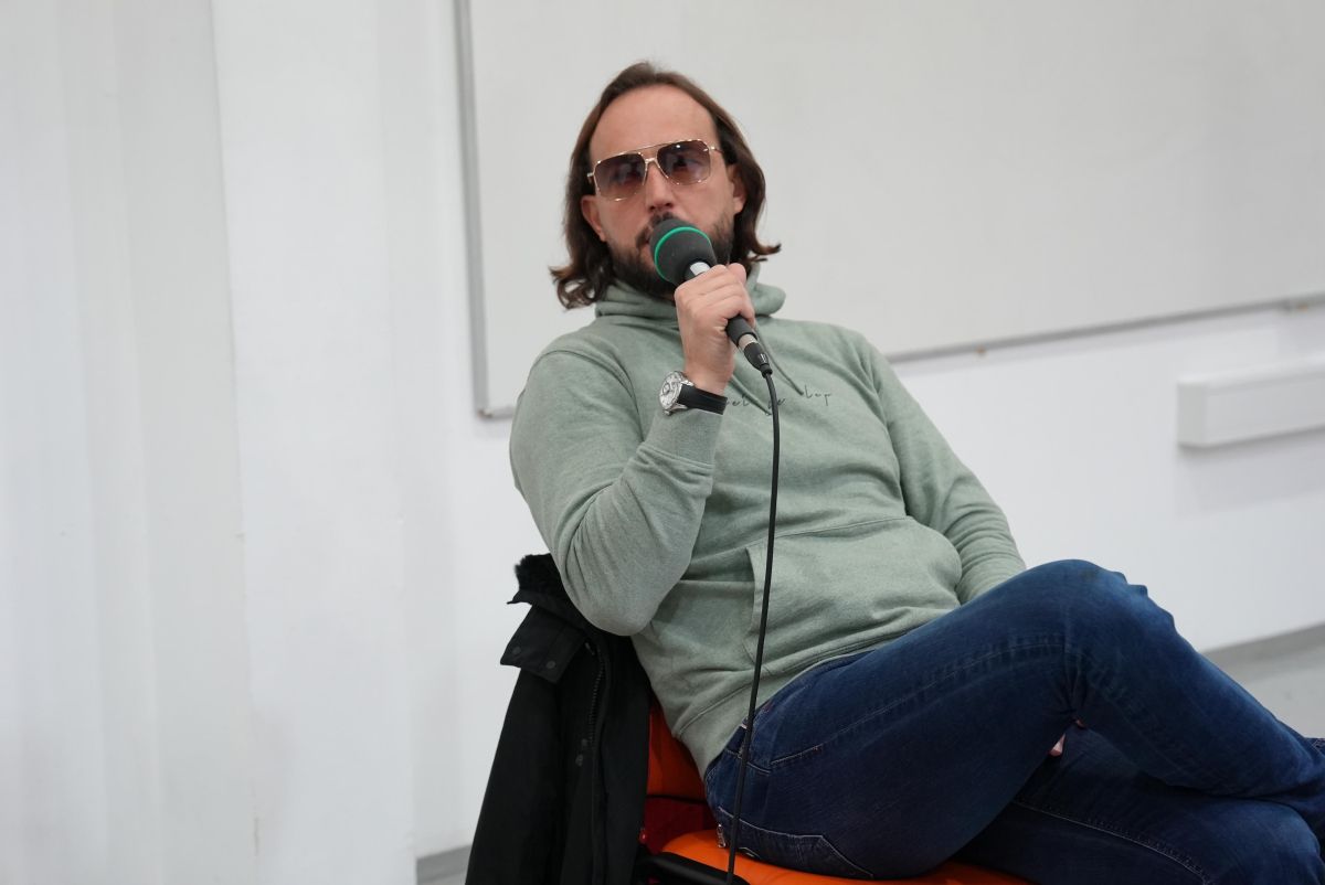 Zlatko, ki je zelo priljubljen tudi med študentsko generacijo, se je z veseljem odzval povabilu in se tako na nek način znova znašel v šolskih klopeh. Na srečanju je poudaril, da je v preteklosti že sodeloval z nekaterimi diplomanti IAM-a, ki so ga fotografirali ali skrbeli za tonsko izvedbo njegovih nastopov, kar je še dodatno potrdilo pomen povezovanja izobraževanja s prakso. V pogovoru je spregovoril o glasbeni sceni, o svoji poti do uspeha ter o tem, kaj pričakuje od sodelavcev, s katerimi ustvarja, študentom pa ponudil iskren in neposreden vpogled v zakulisje glasbene industrije.