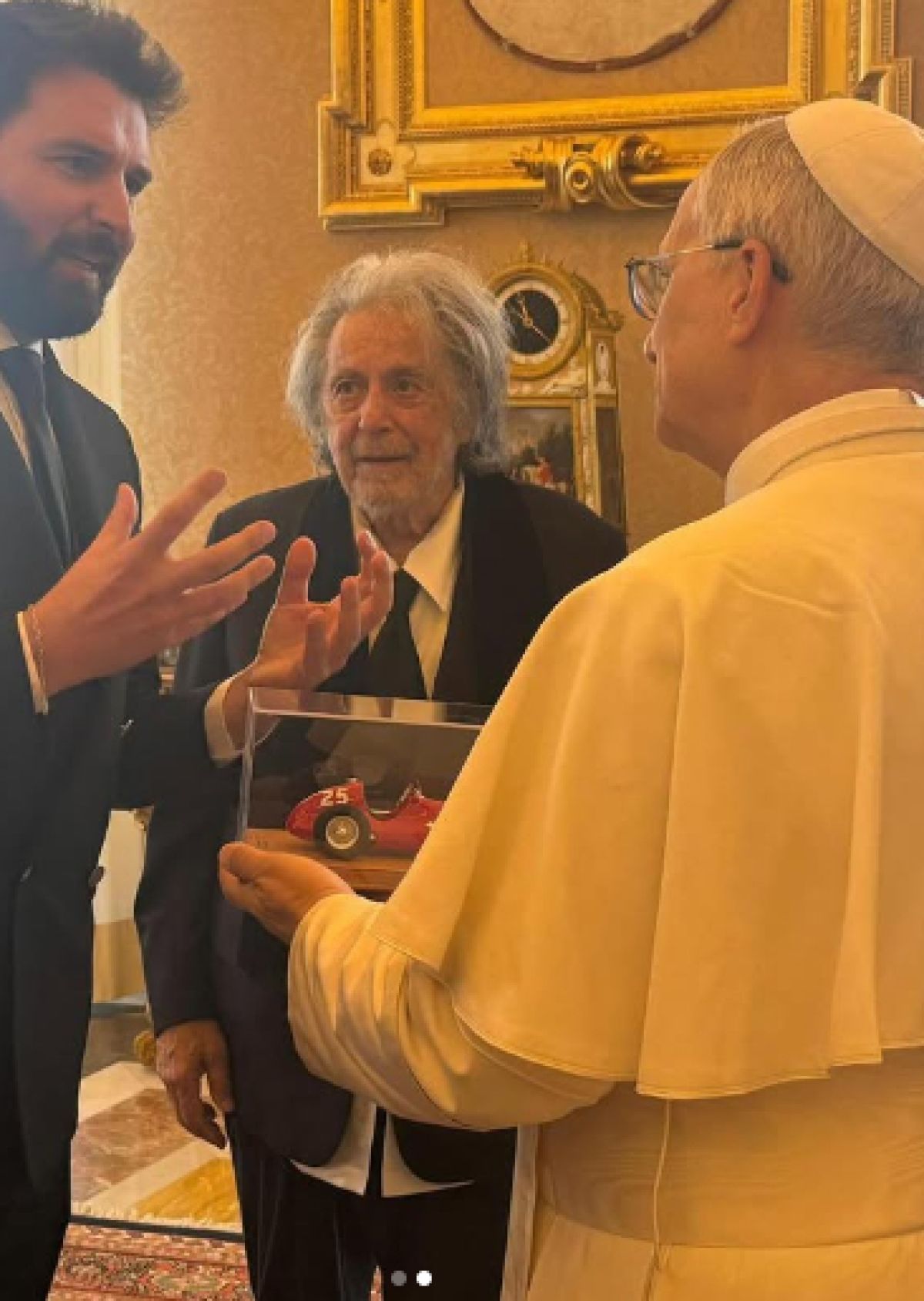 Srečanje je potekalo v Vatikanu, za 85-letnega igralca pa je bila to edinstvena izkušnja, saj se je prvič srečal s katerim od svetih očetov. Družbo mu je delal italijanski producent Andrea Iervolino, s katerim pripravljata film Maserati: The Brothers, Pacino pa v njem igra Vincenza Vaccara, enega izmed zgodnjih vlagateljev v avtomobilsko znamko Maserati. Prav zaradi filma sta tudi obiskala papeža in mu simbolično podarila miniaturni model avtomobila Maserati, ameriški igralec pa mu je izročil tudi svojo knjigo in kapo filmske ekipe iz svojega domačega kraja.