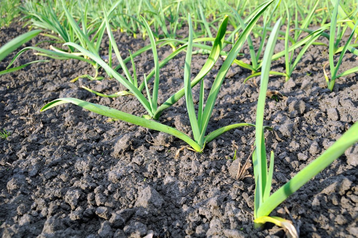 Če gredo namakamo, moramo paziti, da tla niso preveč vlažna, saj v primeru zelo nizkih temperatur vlažna tla zmrzujejo hitreje kot suha. Zalivati prenehamo od 2 do 3 tedne pred spravilom. Poskrbeti moramo, da bo do spravila greda suha in brez plevela, sicer bo plevel česnu odvzemal vlago, ki jo potrebuje za polnjenje čebulic, s tem pa bo tudi pridelek manjši.