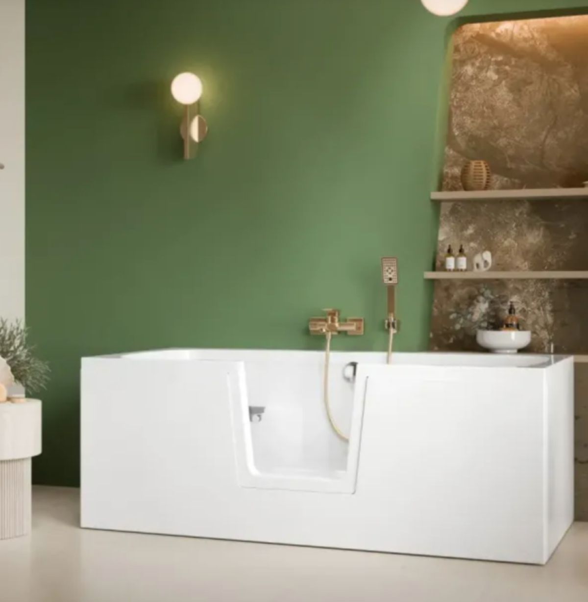 Ta preprost pristop pomeni, da lahko vstopite v kad brez dvigovanja nog visoko, brez potrebe po ravnotežju na eni nogi in brez tveganja, ki ga prinaša prestopanje mokrega roba. Kopanje postane spet varno in dostopno opravilo, ki ga lahko opravljate samostojno.