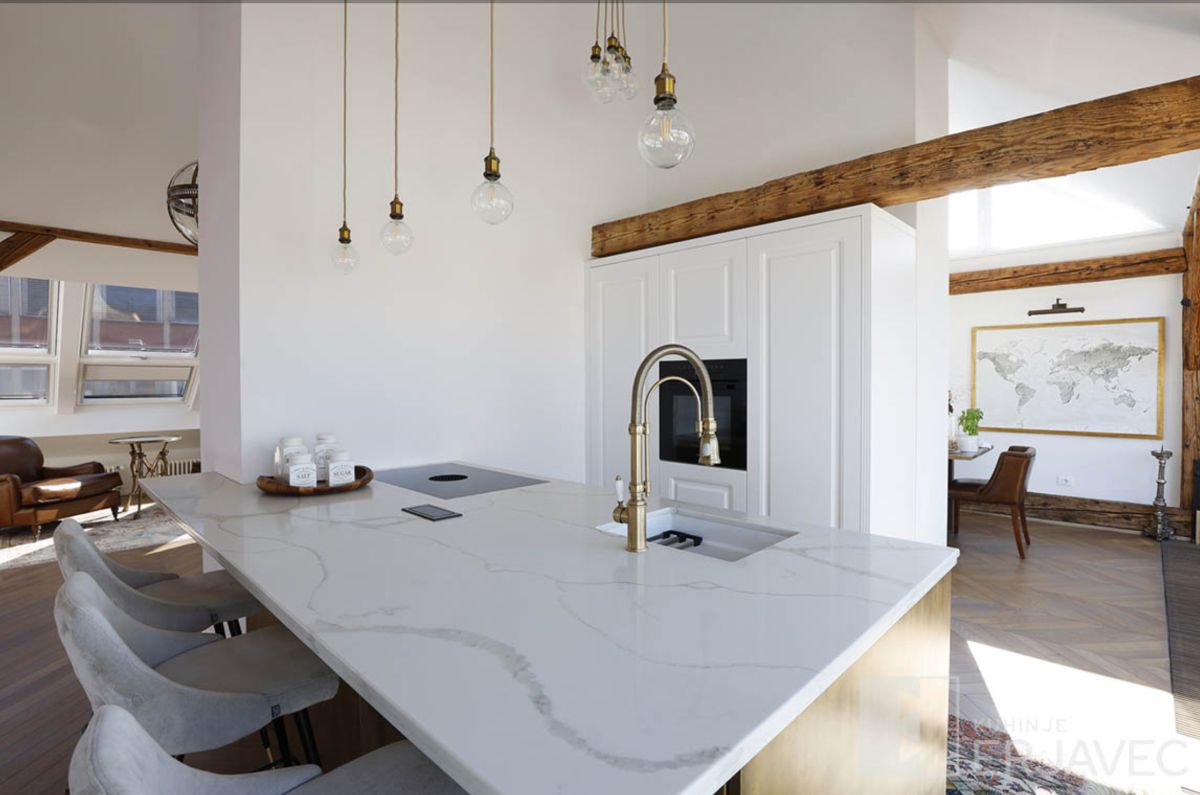Materiali, ki jih uporabljamo, so izbrani tudi zaradi praktičnosti. Masivni les je izjemno odporen in se lepo stara. Namesto da bi izgledal obrabljeno, s časom pridobiva patino, ki mu dodaja značaj. Naravni kamen na delovnih površinah prenese visoke temperature in je enostaven za čiščenje. Kakovostno okovje zagotavlja brezhibno delovanje skozi desetletja.