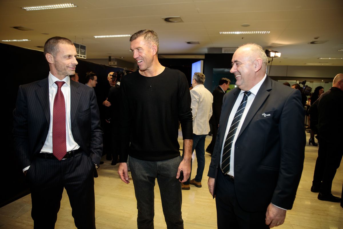 Čeferin pa dodaja, da "imamo odličnega predsednika, odlično ekipo na NZS". "Zaradi tega sem vesel tako osebno kot predsednik Uefe. Bilo bi zelo nerodno, če slovenska zveza ne bi bila dobro vodena. Tako da je prihodnost slovenskega nogometa v naslednjih sto letih blesteča," je optimističen šef Uefe.