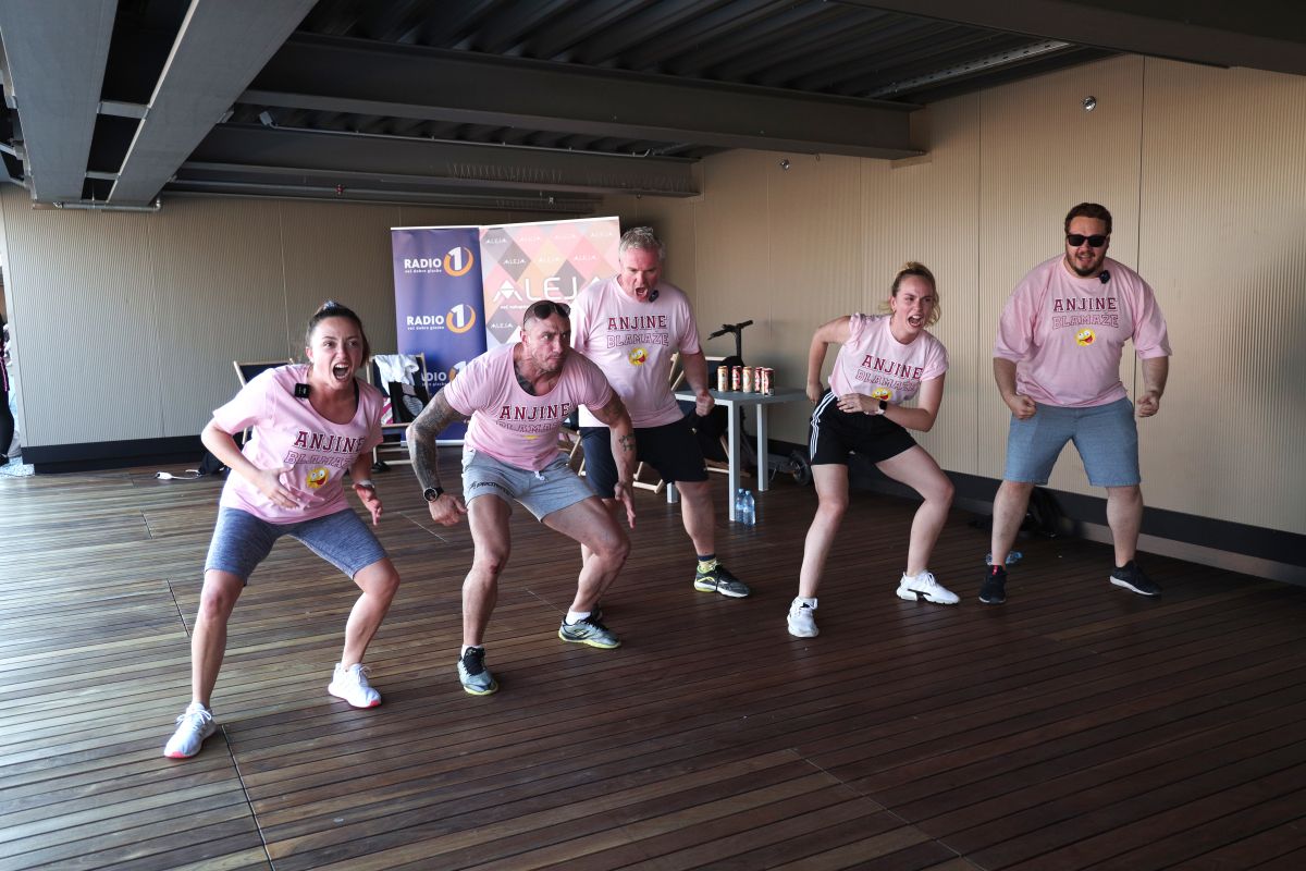 Anja in Roši, ki zbujata poslušalce v Ramšak in Roškar Dobro jutro showu, sta že drugo leto zapored tekmovala v športnem spektaklu. Lani sta igrala nogomet, kjer je s svojo ekipo poslušalcev zmagala Anja. Tokrat pa sta na strehi trgovskega centra stopila na igrišče in zaigrala igro Med dvema prižmojznjenima. Seveda v boju nista bila sama, ampak so jima pomagali številni znani obrazi.
