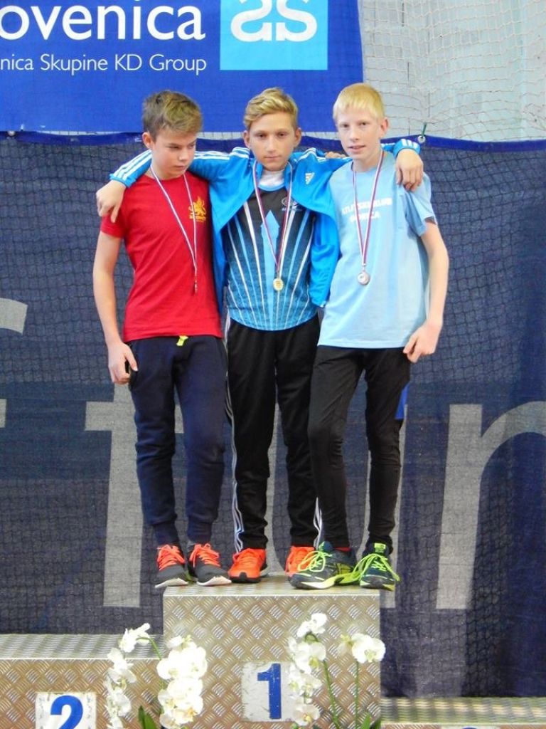 Naši najmlajši so v Šempetru pri Novi Gorici blesteli in se domov vrnili s kar petimi odličji. Državni prvak in nov državni rekorder je postal Anže Glojnarič, ki je v teku na 50m ovire zmagal s časom 8,85 sek, v skoku v daljino pa je s 494 cm osvojil 2. mesto.