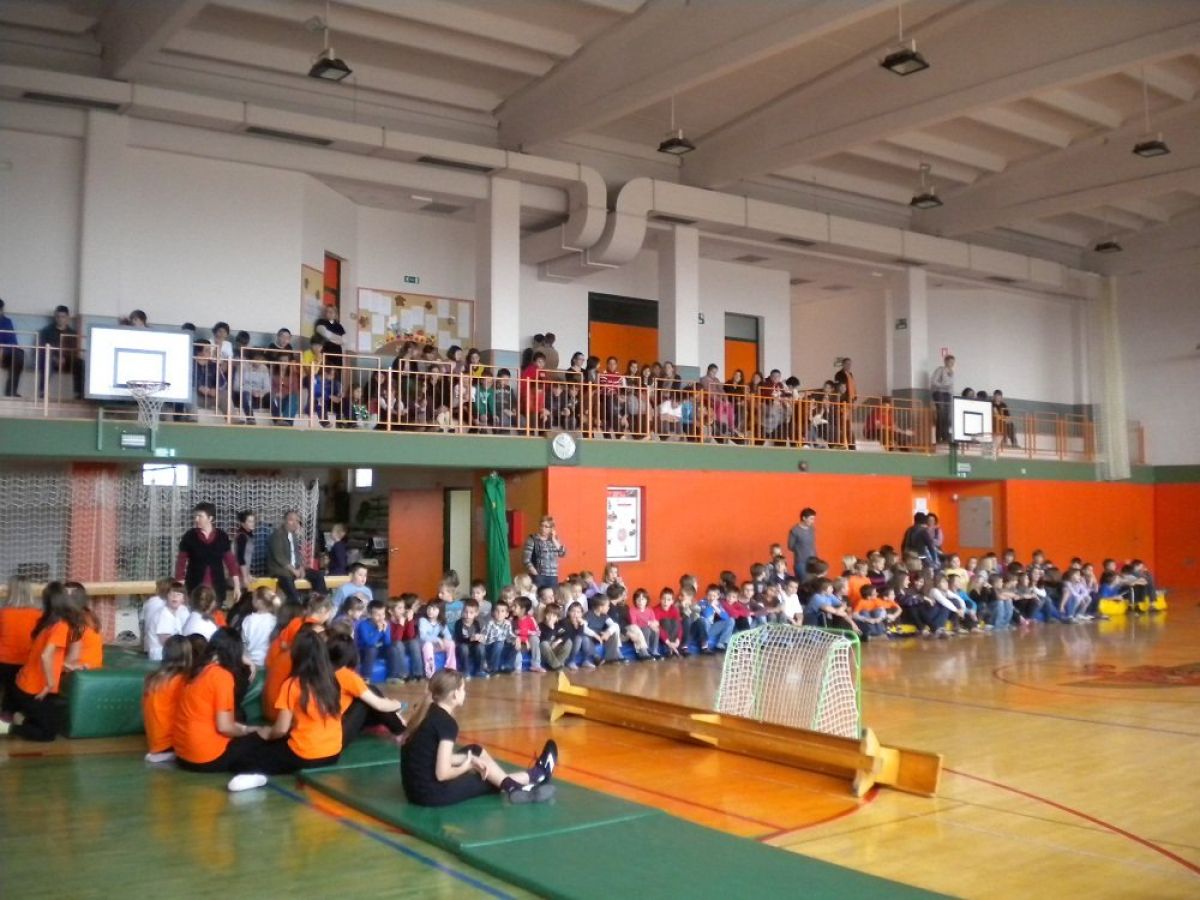 Našemu vabilu so se tako odzvali Matic Derenda, Rok Deržanič, Barbara in Marko Špiler, Jure Rovan in Primož Kozmus, njihovi izzivalci pa so bili uspešni športniki naše šole. Pomerili so se v hokeju, vožnji s pedalinom, plezanju po plezalni steni, metanju obročkov iz vrvi na tarčo in v gimnastični vaji. V hokeju, plezanju po plezalni steni in metanju obročkov iz vrvi so slavili naši gostje, za las so zgrešili zmago v vožnji s pedalinom, pri gimnastičnem nastopu pa je bila očitna premoč naše učenke. Za zabavni del so poskrbeli šolski harmonikarji in plesalke, vodenje prireditve pa so prevzeli učenci sami.