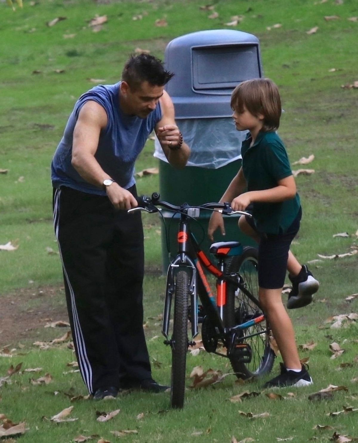 Irski igralec Colin Farrell (41) je imel pred kratkim polne roke dela, ko je v parku sredi Los Angelesa učil svojega mlajšega sina, osemletnega Henryja, voziti se s kolesom brez pomožnih koleščkov.