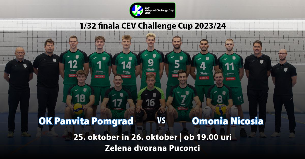 V sredo in četrtek bo Prekmurje po letu premora znova priča evropskima odbojkarskima preizkušnjama, saj bodo soboški odbojkarji Panvite Pomgrada v 1. kolu mednarodnega pokala Challenge gostili ciprsko Omonio. Tekma bo zaradi prenove parketa na prvi soboški devetletki tokrat v Zeleni dvorani v Puconcih, obe tekmi se bosta pričeli ob 19. uri.