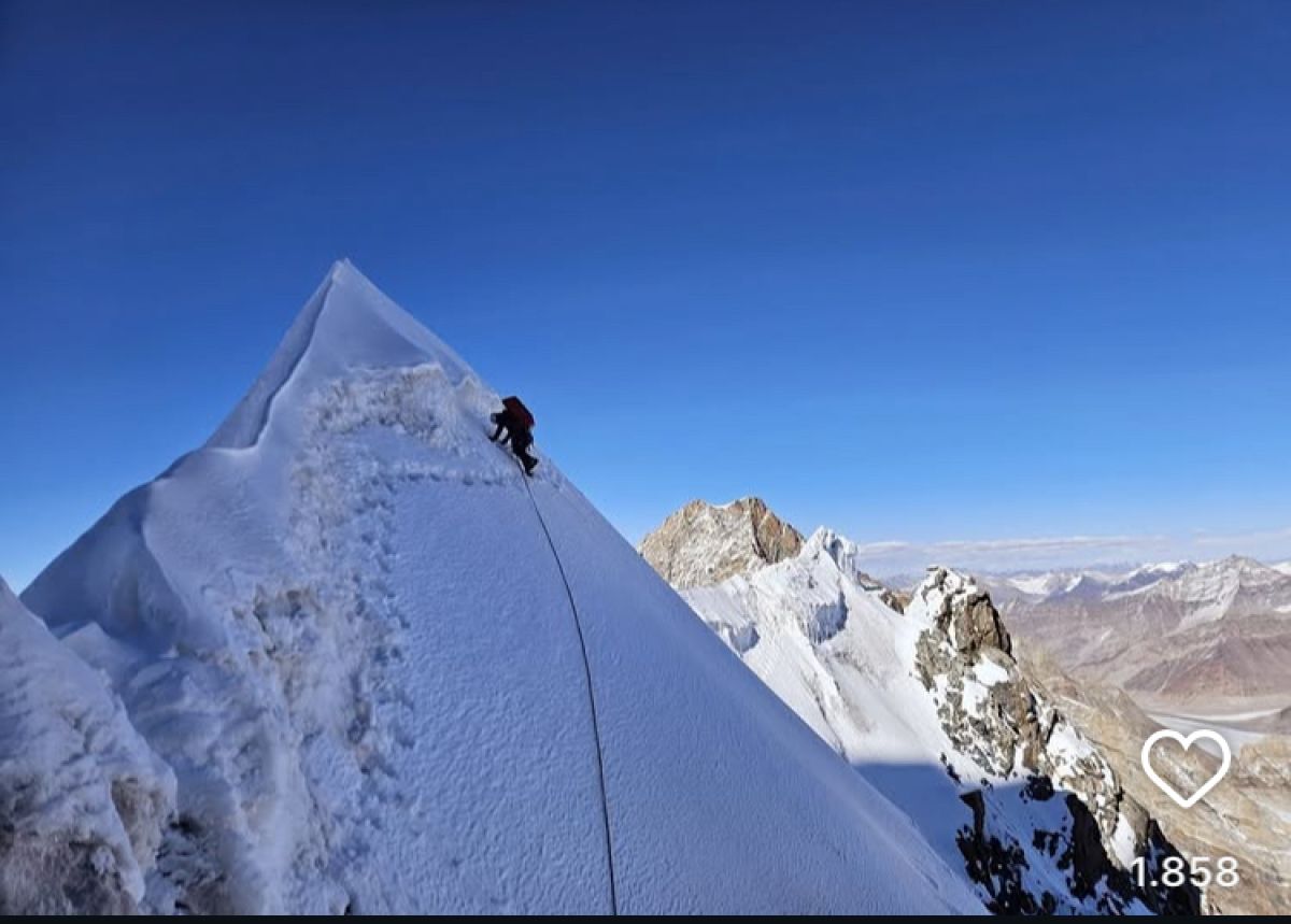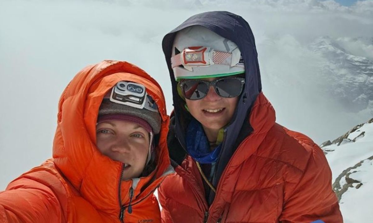Vzpon sta opravili septembra 2024 po prvenstveni smeri Here comes the sun (M6+ AI5+) po vzhodnem grebenu, goro prečili in sestopili po zahodnem grebenu ter čez severno steno. Vzpon v čistem alpskem slogu sta opravili v petih dneh in se na vrh povzpeli v zahtevnih razmerah, z močnim vetrom in bivakom brez šotora tik pod vrhom.