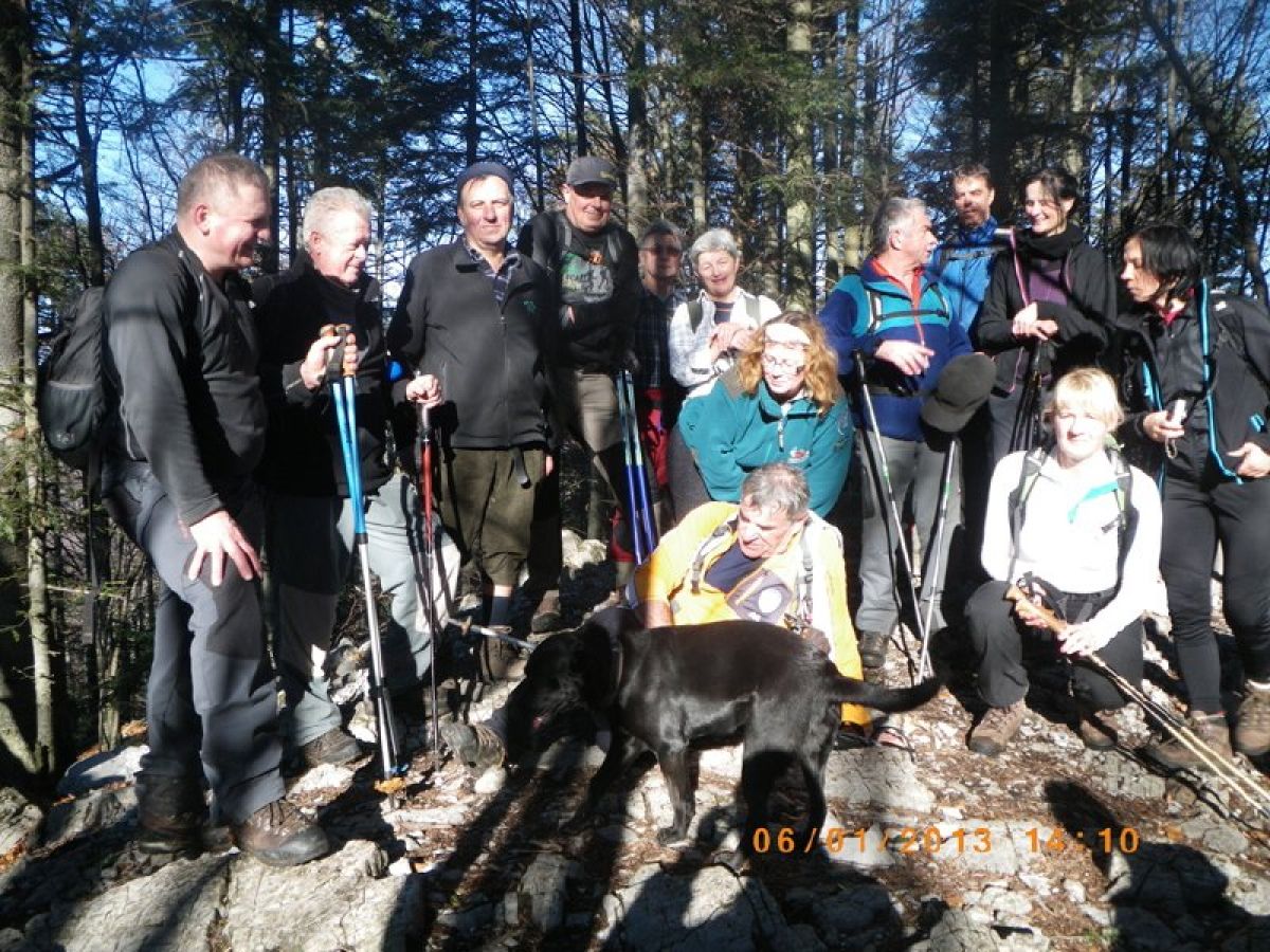 Tradicionalni MAČKOV POHOD na Mirno goro smo črnomaljski planinci letos opravili šele v nedeljo, 6. januarja 2013. Prav nič »mačkasti« smo se ob 9. uri zbrali na Vrčicah, si zaželeli zdravja in varen korak na čim več planinskih izletih. Večina od preko 70 planincev se je odločila za lažjo pot do planinskega doma na Mirni gori. Dvajset planincev je vodnica Sonja popeljala proti Brezovici, do izvira Divji potok, po dolini pod Stari Tabor, nato smo se povzpeli na vrh Škrilja, se spustili po gozdnem brezpotju in še pred vrhom Mirne gore osvojili tisočak brez imena. Spust do izhodišča je bil lahek, saj nam je bilo vreme naklonjeno - nič zimsko. Toplih oblačil skoraj nismo potrebovali.