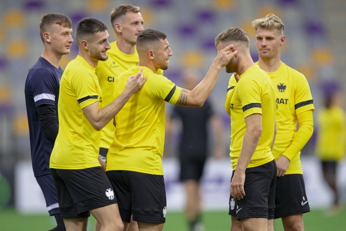 Igralci nizozemske ekipe Vitesse, ki so danes popoldan prispeli v Maribor, so že preizkusili zelenico Ljudskega vrta, na kateri se bodo jutri s črno-belimi pomerili v konferenčni ligi. Strateg Vitesseja Thomas Letsch je na seznam uvrstil 22 nogometašev, ki so pripotovali v štajersko prestolnico, ob robu stadiona pa je Nizozemce med treningom pozdravilo nekaj nogometnih navdušencev. Fotografije Aleš Cipot