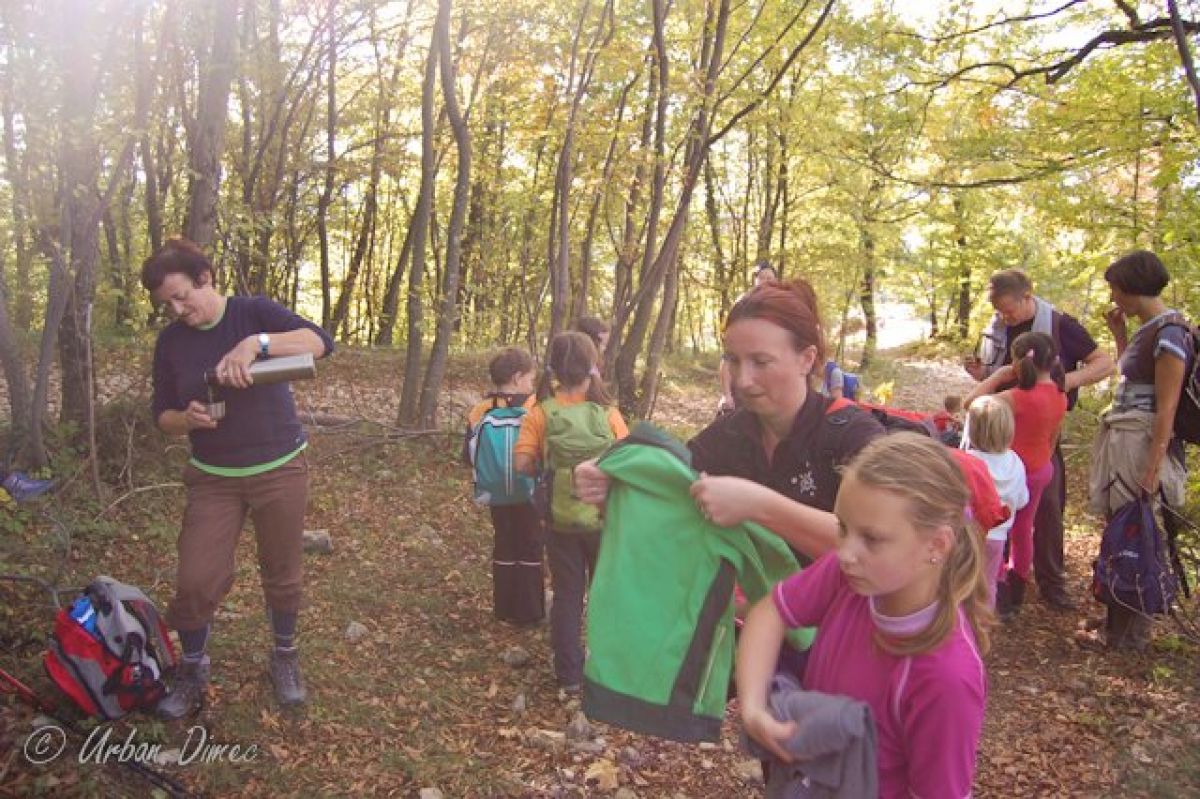 Po približno dveh urah hoje smo prispeli na vrh. Na vrhu smo se zadržali kar nekaj časa, saj nas je vseskozi nežno božalo sonce. Na vrhu smo si vzeli tudi čas za malico in čaj. Po daljšem počitku smo se odpravili v dolino. Prvotni načrt, da bi se vrnili mimo partizanske bolnice, je »padel v vodo«, saj je bila tam pot preveč blatna. Tako smo se vrnili po poti, po kateri smo se vzpeli na vrh. Med spuščanjem smo naredili dva postanka za pijačo. Za spust smo porabili uro in pol.