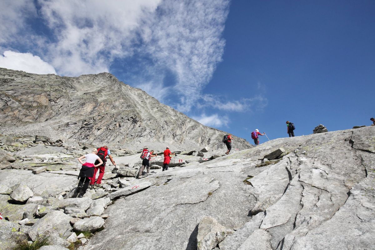 Vzpon smo začeli po zložni poti, ki nas je vodila po izjemno lepi gorski pokrajini s številnimi potočki in slapovi ter mimo jezera Konradlacke do našega prvega cilja, koče Arthur-Von-Schmid-Haus. Prijetno domača koča stoji ob idiličnem jezeru Dösner see na višini 2281 metrov, kamor smo ob prelepih razgledih na visokogorsko pokrajino in blagodejnemu žuborenju voda, ki gorskemu zraku vlijejo še dodatno svežino, prav vsi udeleženci povzpeli brez težav. Po opravljenih formalnostih s prijavo za nočitev, daljšem počitku in okrepčilu, nas je čakal vzpon na 3086 metrov visok vrh Säulecka. Nekaj udeležencev se je odločilo ostati pri koči in uživati ob jezeru, ostali pa smo izločili ne-nujno opremo iz nahrbtnikov in se začeli vzpenjati proti vrhu. Udobno travnato pot, ki se je v ključih vila do koče, je zamenjala bolj zoprna steza, ki vodi mimo in čez velike granitne ploščate kamnite bloke. Ker je bila pot v prvem delu zelo dobro označena, smo se razdelili v dve skupini. Pot sicer ni nikjer prepadna, vendar premikanje po ogromnih granitnih ploščah, še zlasti v zadnjem delu, kjer so bile markacije precej slabe in ne nujno na najboljših mestih za stabilen korak, zahteva od pohodnika precej pazljivosti, da ne sproži premik plošče ali nogo položi v vmesno razpoko. Pred zadnjim vzponom so se začeli na nebu nabirati temni oblaki, ki so prinesli celo par kapljic, zato smo malo pospešili korak. Uspešno smo prestopili mejo 3000 metrov in osvojili vrh, mnogi med nami prvič, zato je poleg fotografiranja in sledil tudi simboličen krst. Zaradi nepredvidljivih oblakov smo vrh kmalu zapustili, vendar nas je že hitro spet obsijalo sonce, ki nas je spremljalo potem vso pot nazaj. Preostanek dneva in večer smo preživeli v lepo urejeni koči v družbi gostoljubnih oskrbnikov, ki so s svojim pristopom in gestami, kljub ne povsem razumljivi besedni komunikaciji, dali vedeti, da smo zaželeni gosti.