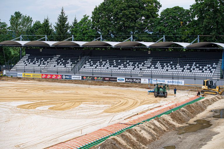 Na in ob igrišču mestnega stadiona Fazanerija so v teh dneh še gradbeni stroji. Poteka prenova igrišča, projekt pa je, kot smo že večkrat poročali, vreden 800 tisoč evrov. Zajema izgradnjo drenažnega sistema in položitev nove trave. Nogometaši Mure 7. julija pričenjajo evropsko sezono, ko bodo v prvem krogu kvalifikacij za konferenčno ligo gostovali v Moldaviji pri ekipi Sfintul Gheorghe, teden dni zatem jih na prenovljenem igrišču čaka povratna tekma. Kako prenova poteka, si lahko ogledate skozi fotografije Aleša Cipota.