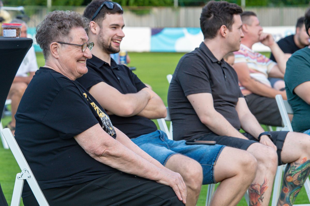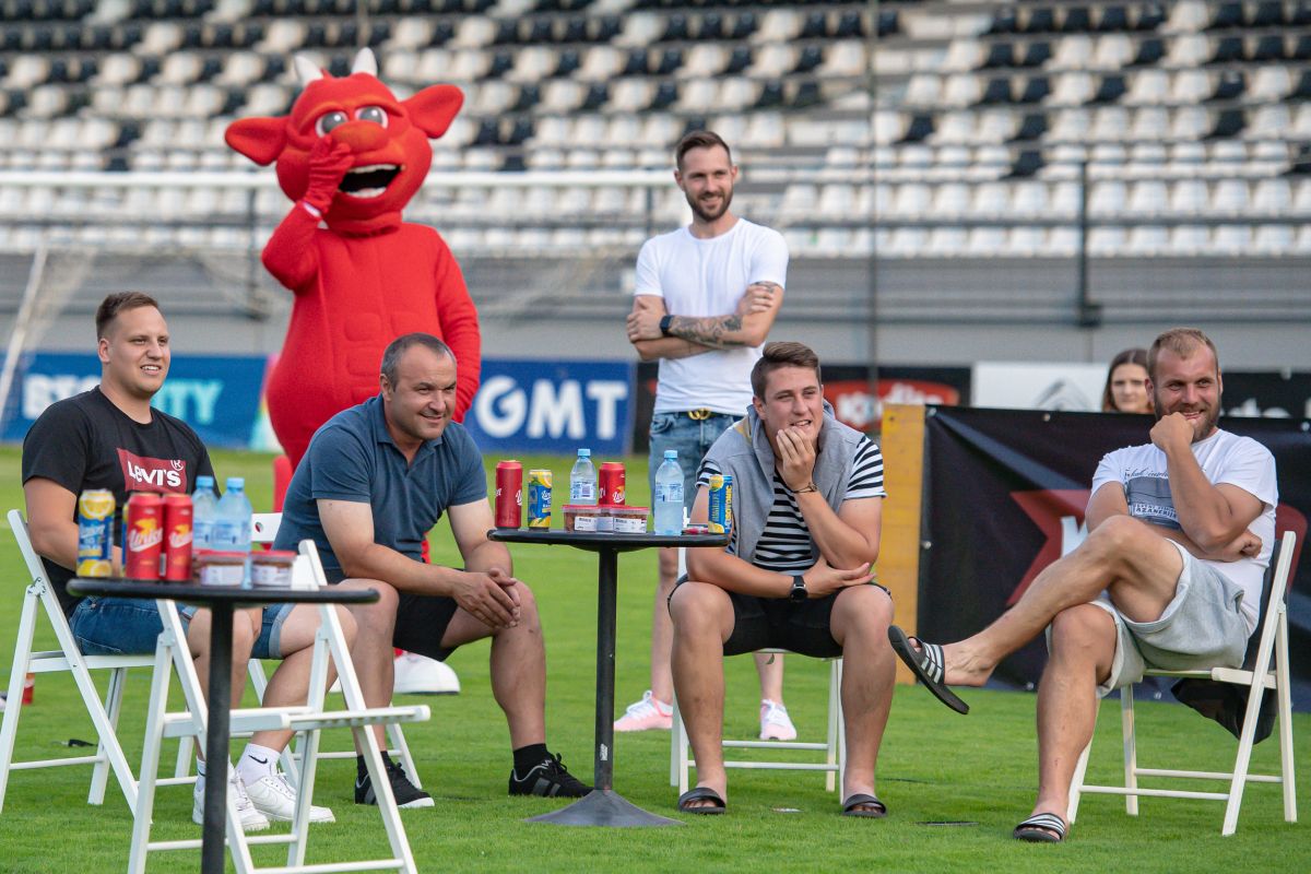 Nogometna šola Mura je pod žarometi soboške Fazanerije izvedla svojo obljubljeno prireditev Čarno-bejla debata (Pitaj ka ščeš), v kateri je 30 izžrebancev lahko vprašalo vse, kar si je želelo. Na voljo za odgovore so bili trener Ante Šimundža, igralci Luka Bobičanec, Žiga Kous in Nino Kouter ter namesto napovedanega predsednika Roberta Kuzmiča predstavnik kluba Jaka Maučec. Fotografija Aleš Cipot