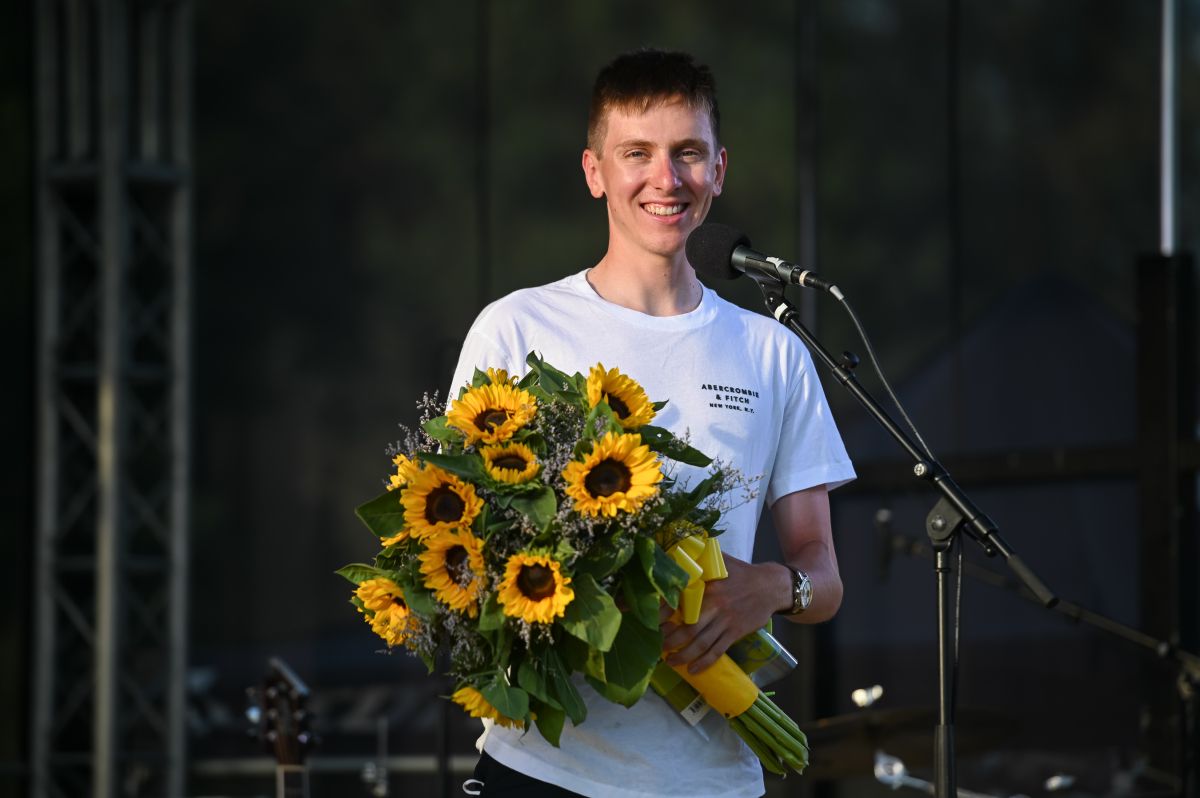 Pogačar se je na prizorišče pripeljal s kolesom in se razveselil velike množice, ki ga je pričakala. "Danes se počutim kot takrat, ko sem se pripeljal na Elizejske poljane," je izpostavil in se zahvalil vsem zbranim. Kot je poudaril, je to zanj najlepša nagrada.
