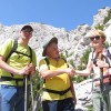 Matej nas razdeli v dva avtomobila in odpeljemo se proti Logarski dolini. Še pred startom so se dogovorili, da tokrat Mrzle gore ne bodo osvajali, ker je preveč vroče, zato smo lahko imeli v Lučah postanek za kavico. Na zbirnem mestu sta nas čakala še dva pohodnika in ob osmi uri smo najprej naredili skupinsko fotko, nato pot pod noge proti slapu Rinka in naprej na Okrešelj. Joži, Zvonka in jaz smo takoj povedale, da naprej od Okrešlja ne gremo, zato smo v zamiku korakale za našo ekipo.
