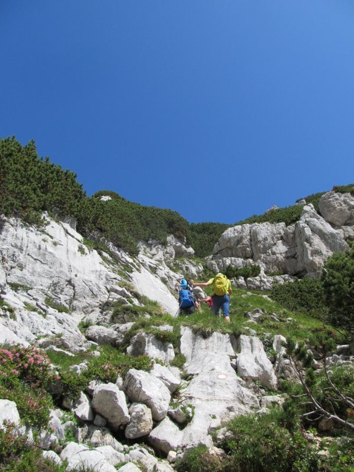 Kako smo bile vesele planincev, ki so prihajali z gore, da smo lahko počivale. Med potjo smo občudovale gorsko cvetje, imele smo občutek, da nas hladi tudi hladna Savinja in v dobri uri in pol smo bile tudi pred kočo na Okrešlju. Seveda naši »brhki« pohodniki so bili tedaj že napoti proti Savinjskemu sedlu, le Dragica se je sončila pred kočo.
