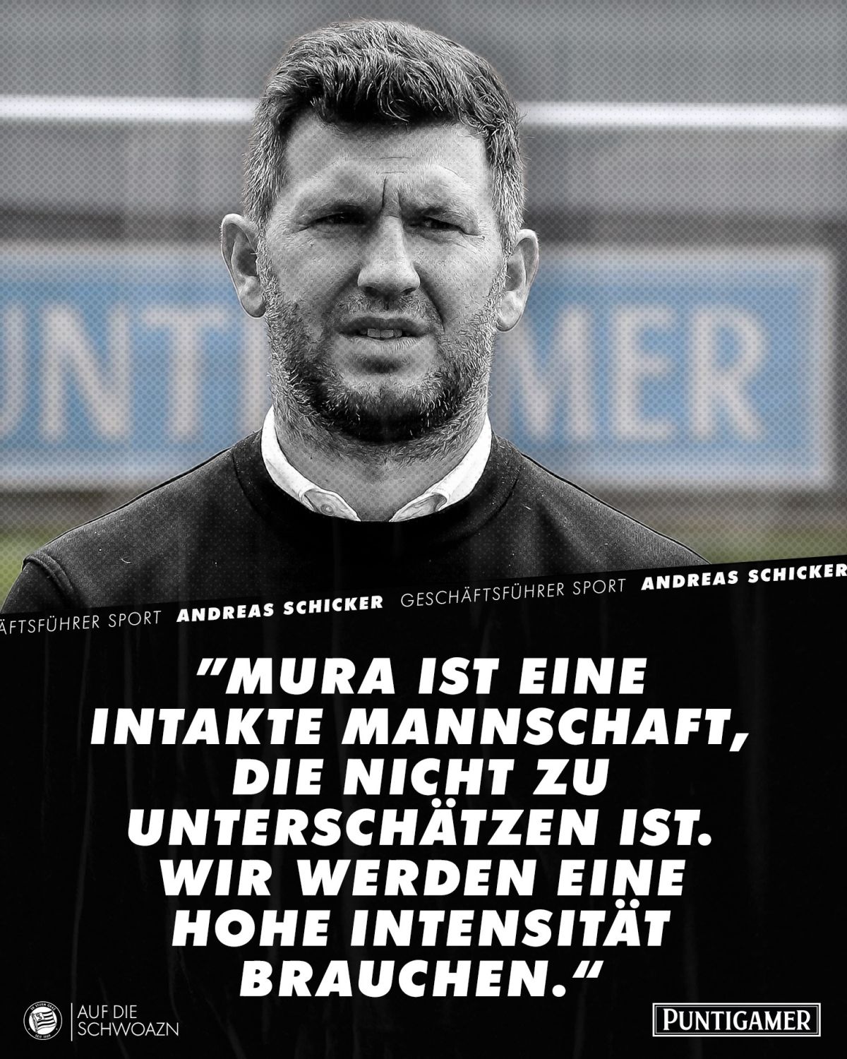 Previden pa je tudi športno-poslovni direktor graškega kluba Andreas Schicker: "Mura je čvrsta ekipa, ki je ne gre podcenjevati. Potrebovali bomo visoko intenzivnost."